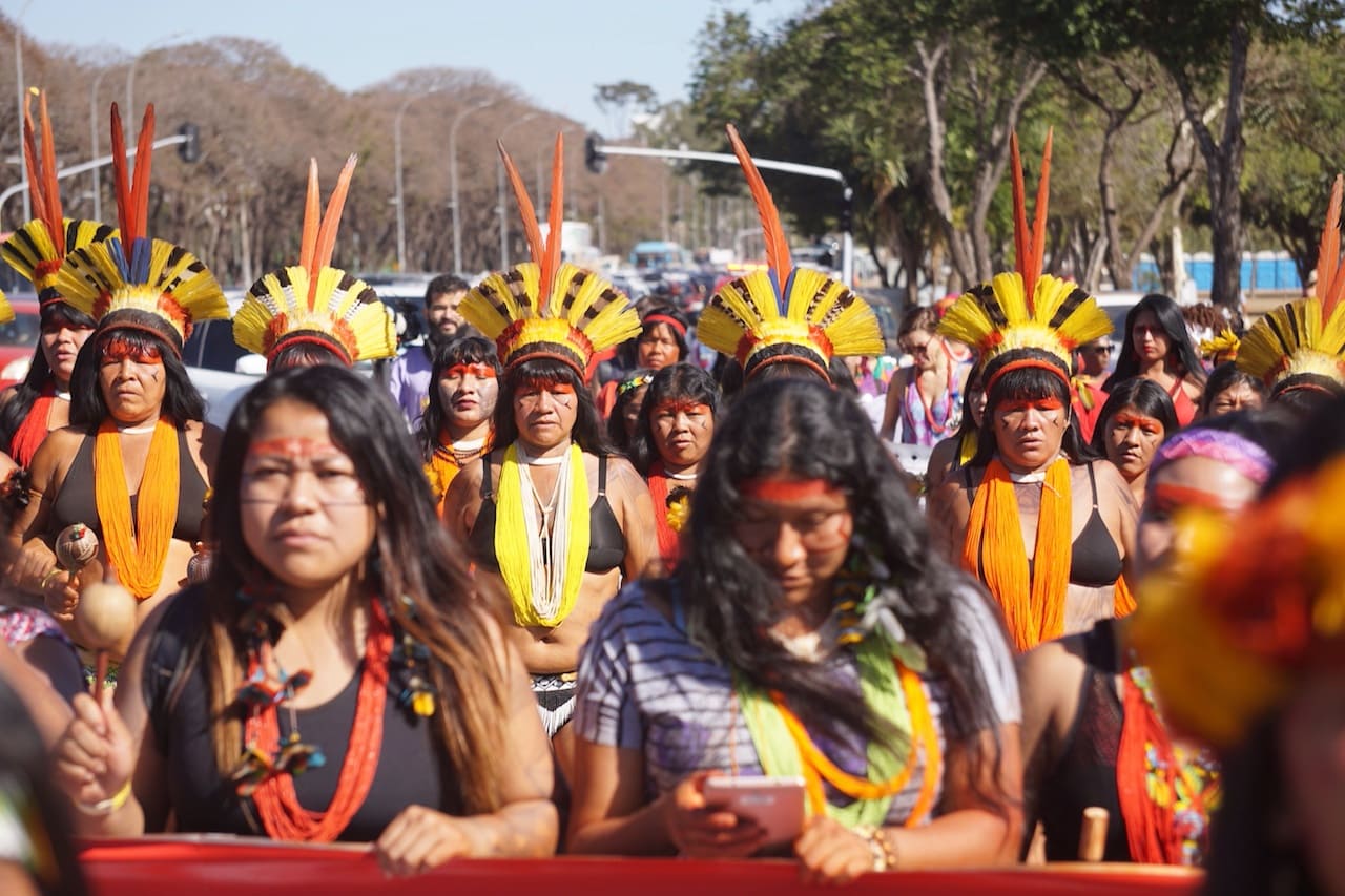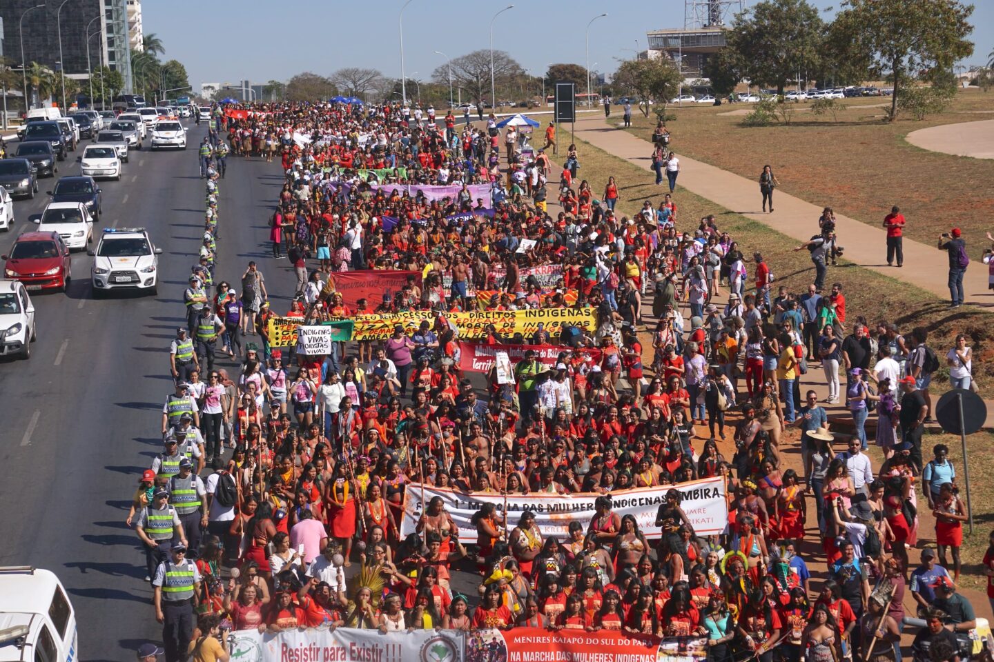 約100民族、2,000人が集結した「全国先住民族女性マーチ」。全国の先住民族保護区総面積の9割以上がアマゾン地域に集中する一方で、そこに住む先住民族の数は全体の4割程度。土地への権利が保障されないままの人たちが全国にいる(写真:下郷さとみ)