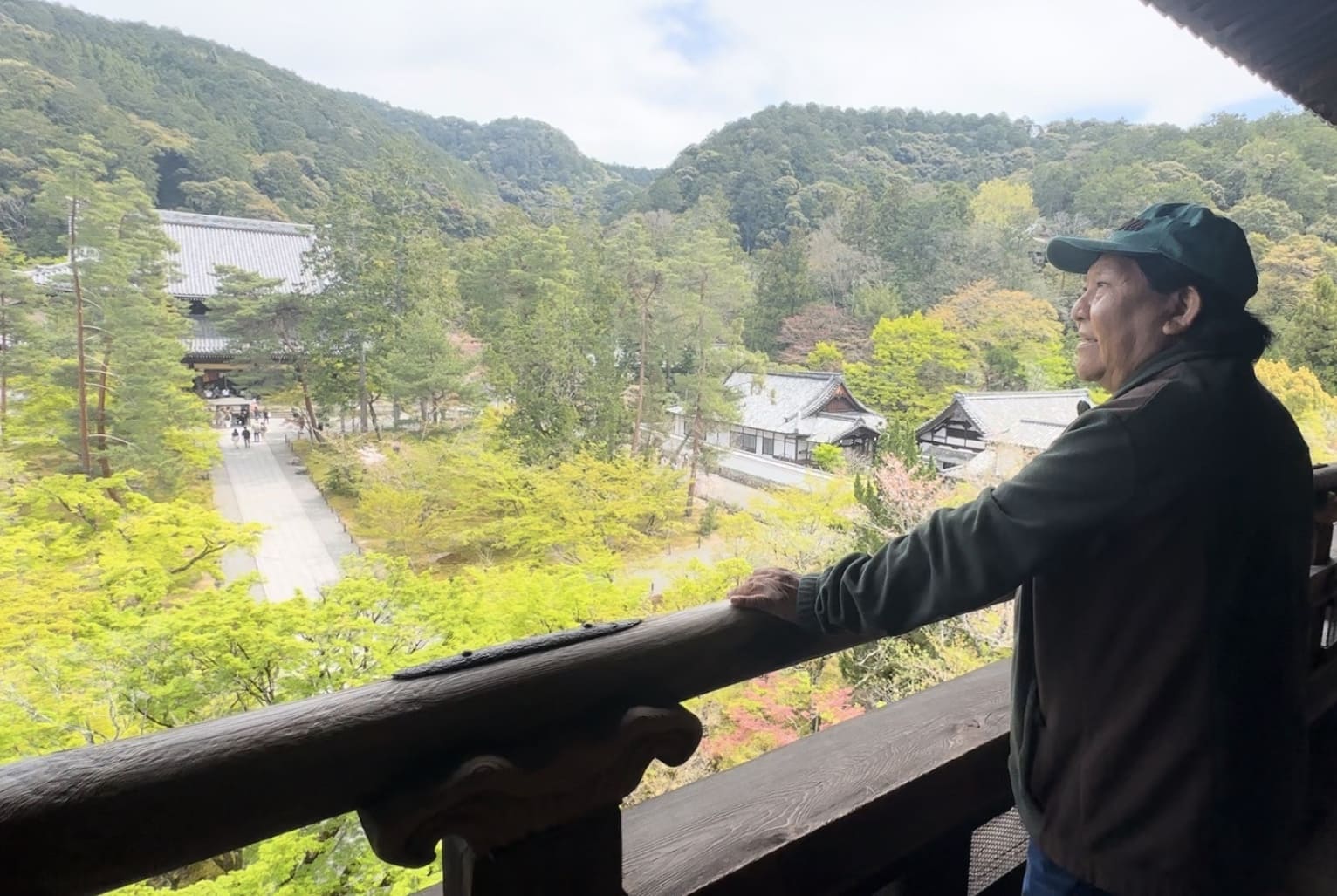 2024年春、ヤノマミ民族のリーダー、ダビ・コペナワさんが「KYOTOGRAPHIE 京都国際写真祭」に招かれて初来日。下郷さんは通訳として12日間同行し、寺社や神域の山などにも案内した。アニミズムの世界観を共有する文化や風景に触れてほしいという願いからだった。