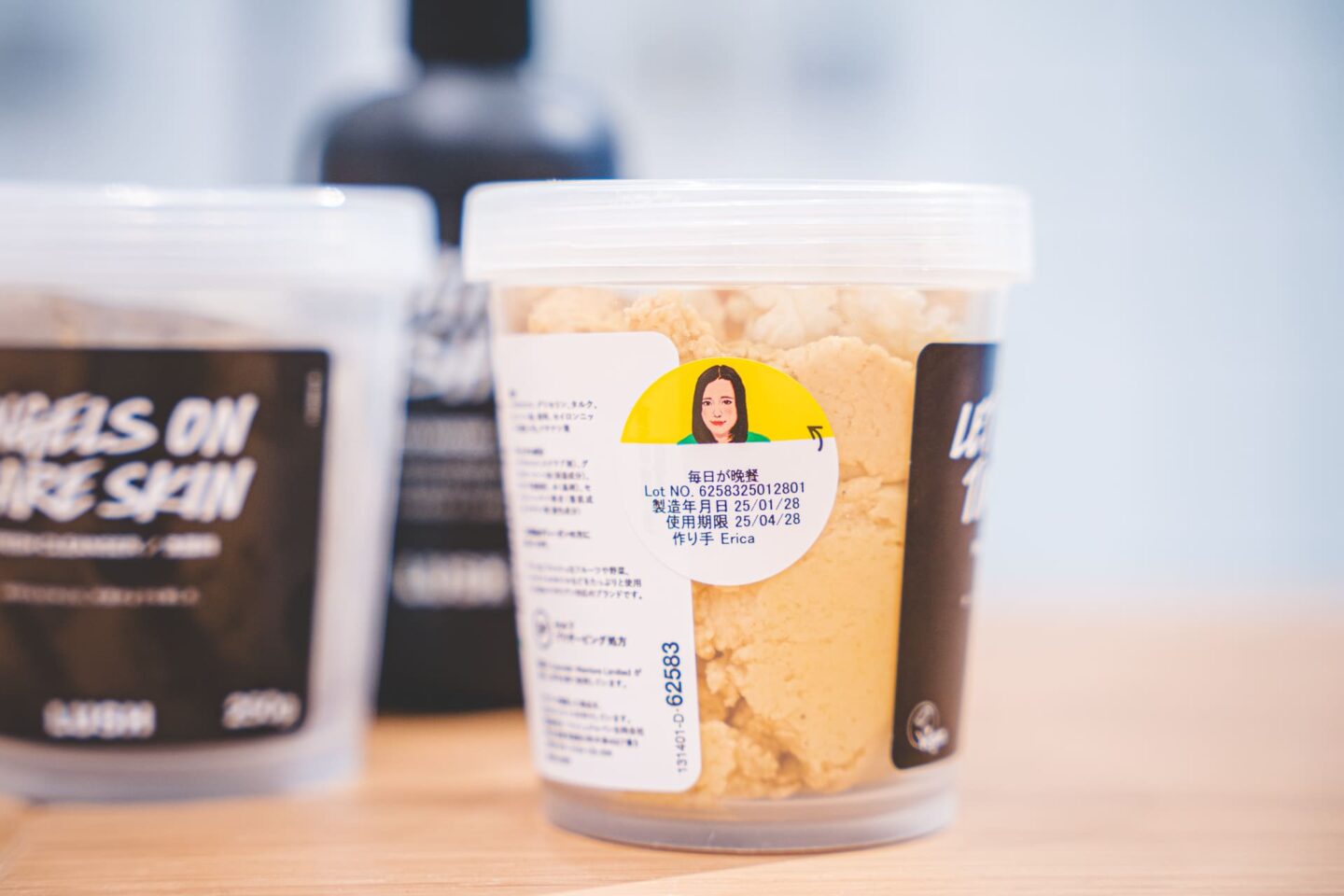 機械ではなく、人の手でつくる。そして、「売る」ことと「つくる」ことを切り離さない。そこには、「誰がつくったのか」という背景も含めて商品を届けたいという、LUSHならではの哲学が息づいています。