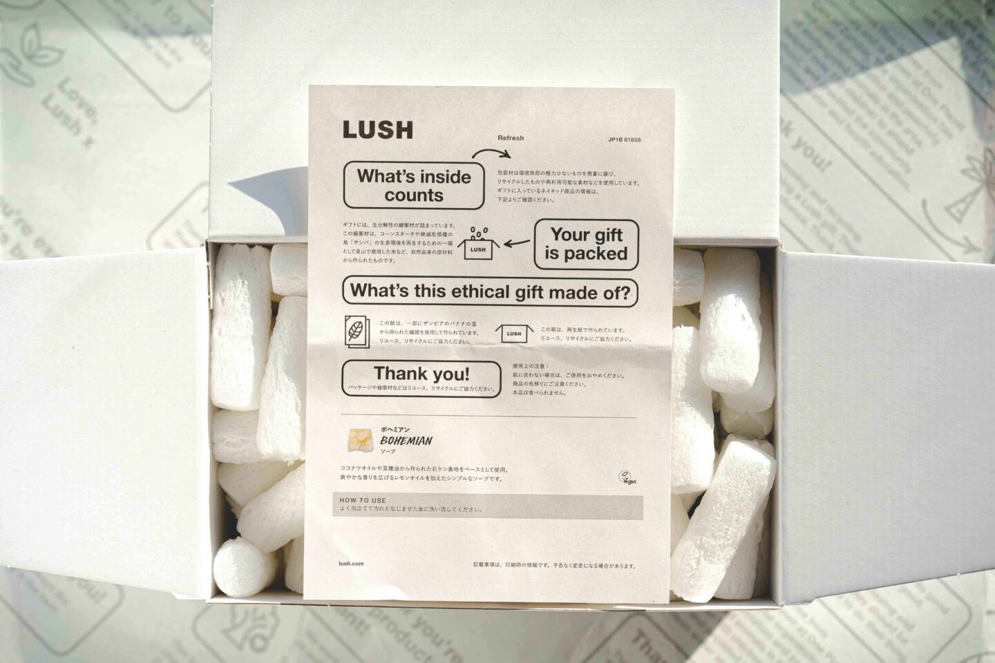 LUSHが創業当初から一貫して大切にしてきたのが、「私たちのビジネスが自然環境に悪影響を及ぼしてはならない」という姿勢。商品そのものはもちろん、パッケージに使う紙や容器、緩衝材にまでしっかりと目を向け、自然環境への影響を考えています。