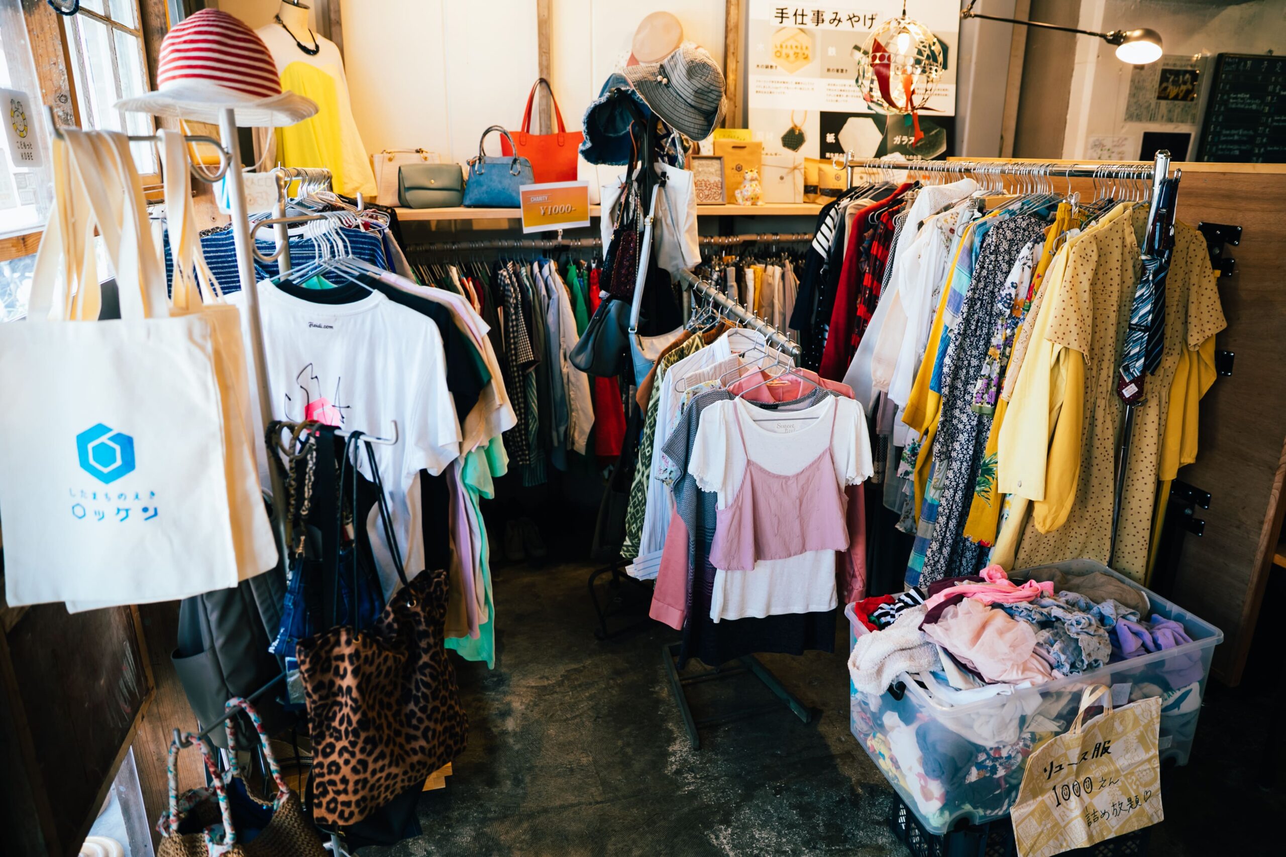 リニューアルにあたり、これまでのレンタルスペース事業に加え、寄付で集めた古着の販売やまちの地場産業と連携したお土産づくり・販売をスタート。さらに、ロッケン全体の収益の一部が地域に寄付され、まちの文化や活動を守るために使われる「まるごとチャリティショップ」という仕組みを始めました。