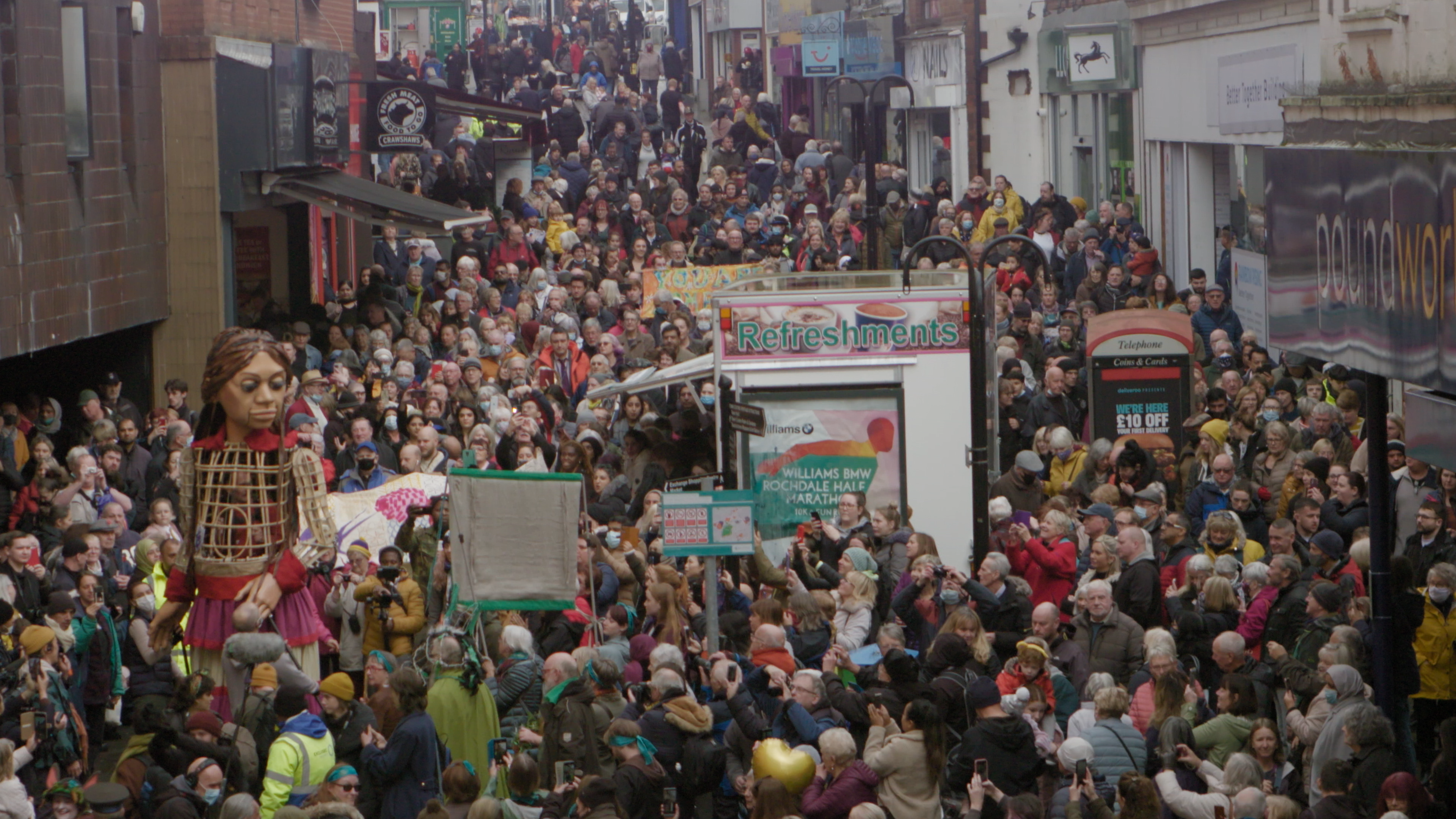 映画のモチーフとなっているのは、『The Walk』というアート・プロジェクト。これは、シリア難民の少女をかたどった”リトル・アマル”と呼ばれる身長3.5メートルの操り人形が旅をするプロジェクトです。2021年に旅を始めてから、アマルは17ヵ国166の都市を訪れ、200万人以上の人びとと出会い、数千万人の人びとがオンラインで彼女の旅を見守ってきました。このプロジェクトは世界中の難民の子どもたちの緊急支援のための寄付を募っており、これまでに100万ドルの資金を集めてきました。