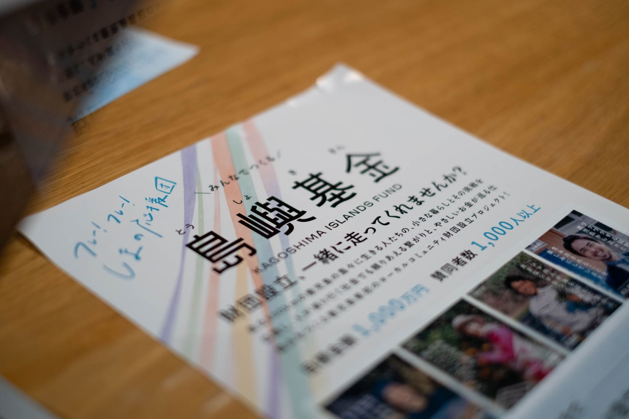 島嶼基金への寄付賛同を呼びかけるフライヤー。県内外問わず、多くの人から寄付があり、情報公開1ヶ月で500万円を超えたという