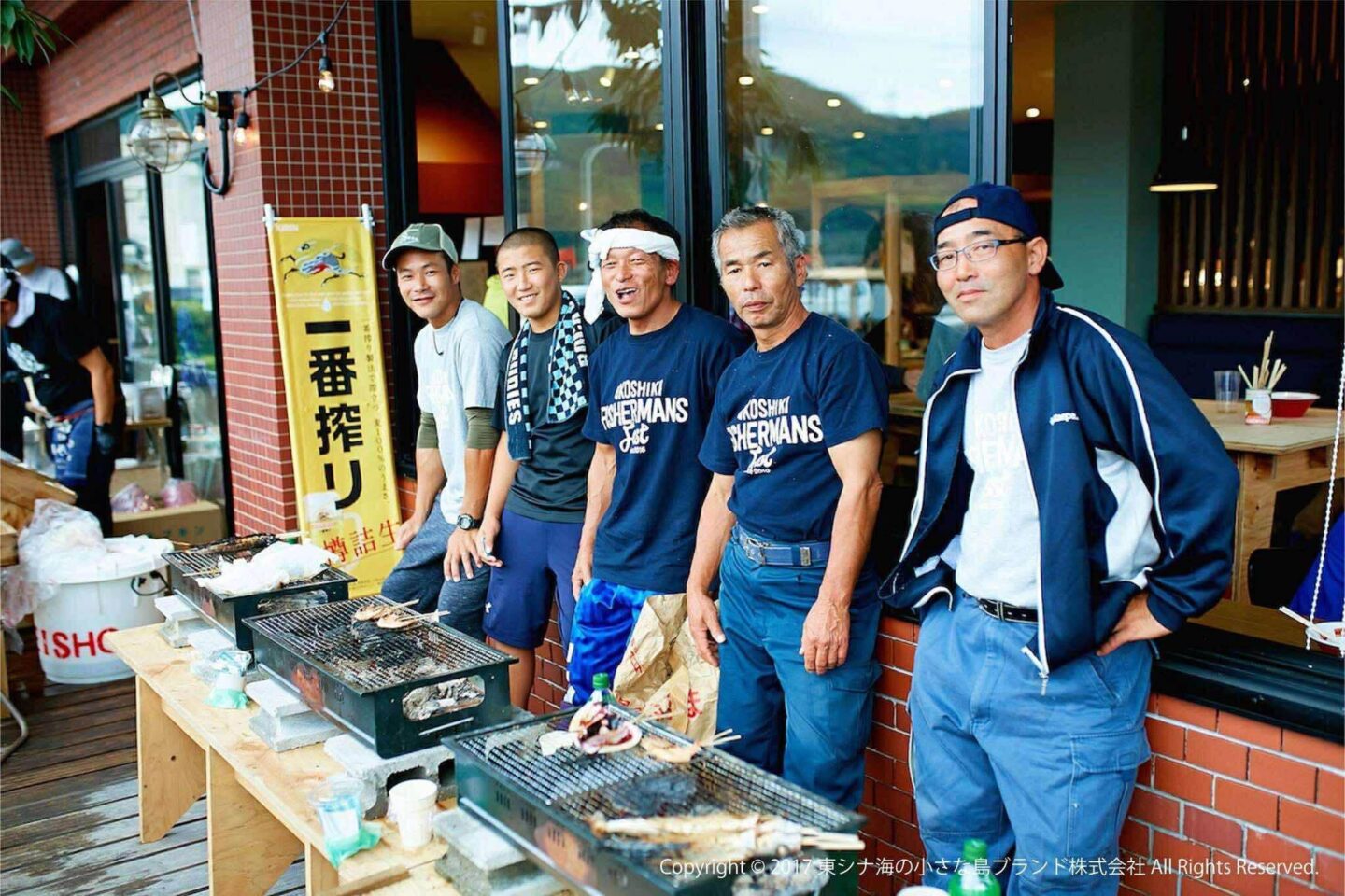 KOSHIKI FISHERMANS Fest(2017年) イベントに臨む漁師たち 参加者に魚を焼きながらコミュニケーションを楽しんだという(画像提供:東シナ海の小さな島ブランド株式会社 )