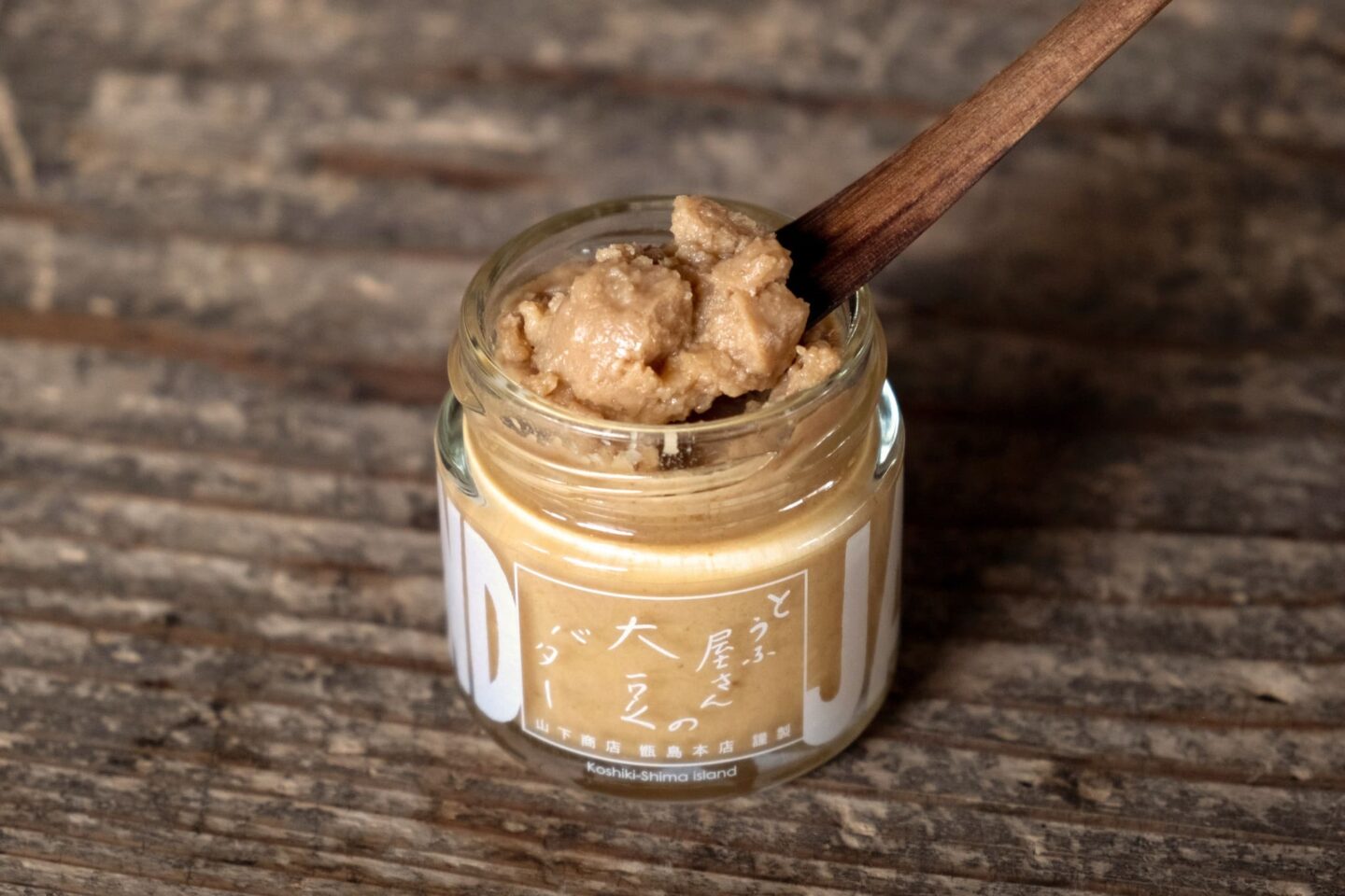 2013年に商品開発した「とうふ屋さんの大豆バター」。 とうふと同じように一つひとつ手づくりで瓶詰め。慌ただしい朝をスローに。誰もが健康的で豊かな朝を迎えてほしいという思いから製造が始まった(画像提供:東シナ海の小さな島ブランド株式会社)