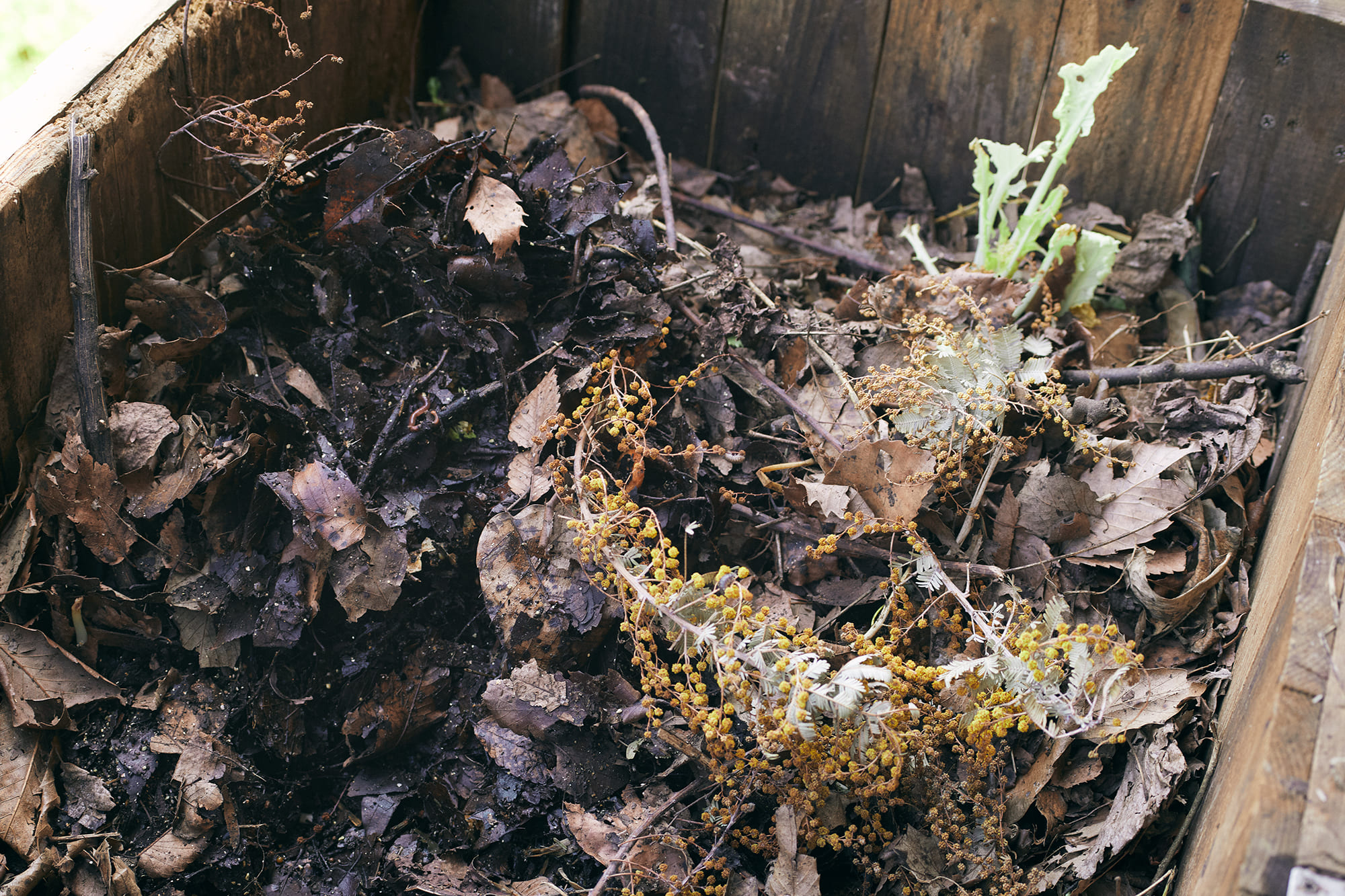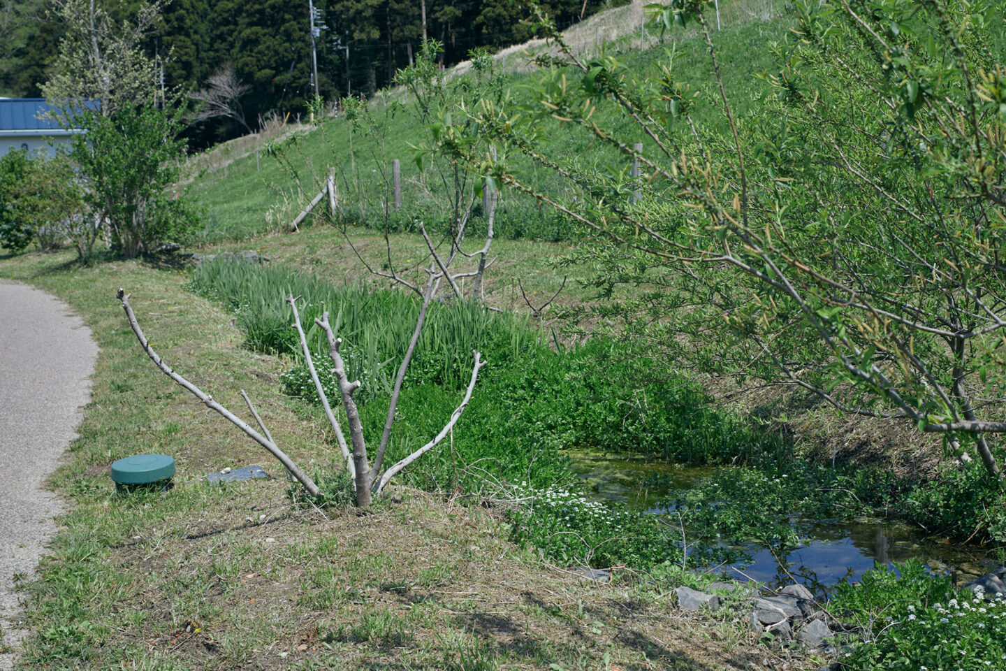 高橋さん ちょっと草、生えてきましたね。草刈りも循環部門のチームでやっているんですが、刈った草はまた活用されるんですよ。草の山をそのまま放置しておいても地面の栄養になりますが、景観を損ねるのであちこちにある金属の網に集めておくんです。そうすると、枯れた草をダンゴムシやコガネムシの幼虫が食べて、その糞を微生物たちが分解して、やがて土になっていく。自然の循環を促すことになるんです。