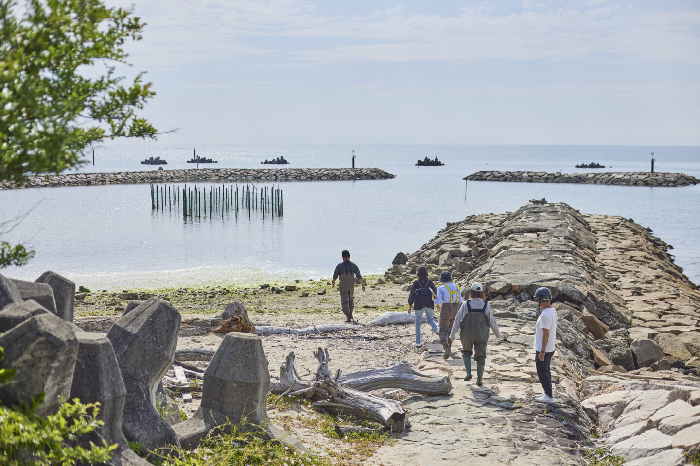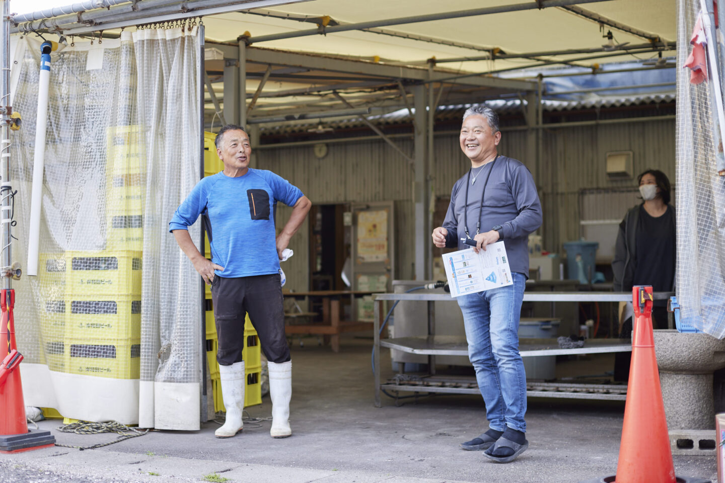 浜から牡蠣小屋に戻る道中に地元の漁師と出会ったときも、取材中に阪南市の社会福祉協議会の職員の方たちが「みんなの食堂」で提供する食材を持ってきてくれたときも、お互いに親しみを込めた笑顔で会話する姿から、大阪湾を豊かな海にしようという目標に向かって大航海するクルーのような厚い信頼関係を感じました。