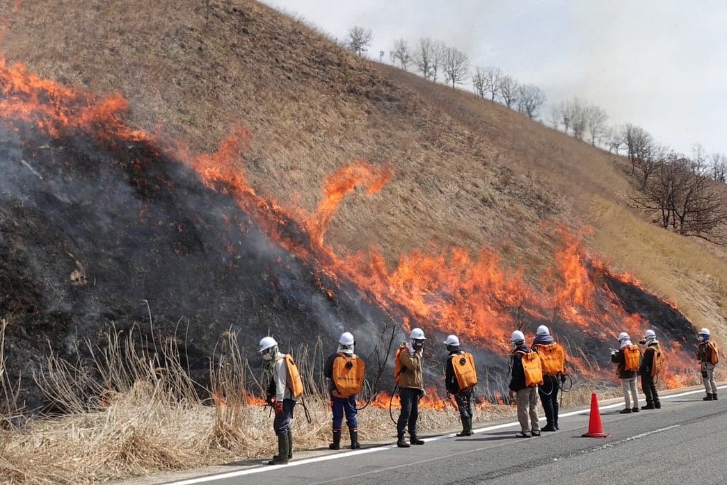 中でも一大イベントは、なんといっても毎年4月に行われる山焼き。かつてのように農業のために行うものではなく、現代でもできる自然と共生する方法を模索しながら、毎回ボランティアを募っています。ボランティアとして関わる人は年々増えており、2025年4月は3回の開催でスタッフとボランティア合わせて200名ほどが参加しました。地域住民だけでなく、県内の他地域や近隣の県、遠くは関西からの参加もあったそうです。