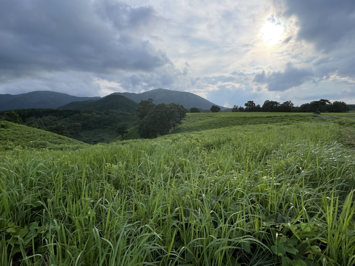 2024年度の蒜山アクションツーリズムにて、草原を見学する様子。現地ツアーを通して、蒜山地域の資源や課題に自身のビジネスを掛け合わせ、最終日にプロジェクトを提案した(写真提供:バ・アンド・コー株式会社)