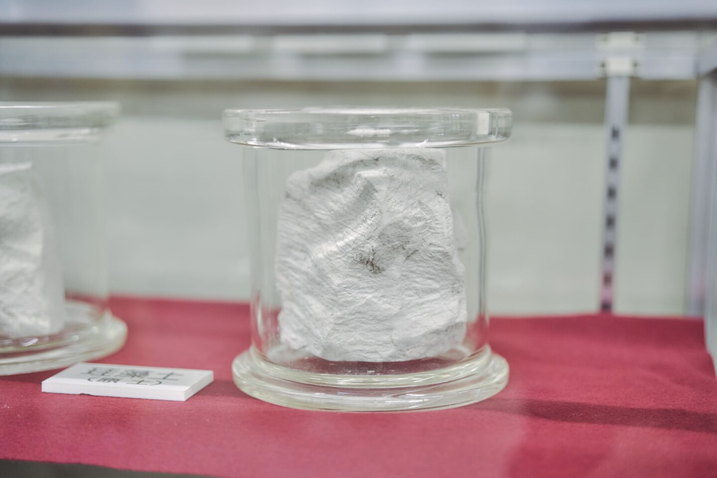 例えば、1930年代から採掘されるようになった珪藻土は、かつて湖だった期間が長いことから、湖の底で植物性プランクトンが化石化し、堆積してできたもの。蒜山地域には、約100mにも及ぶ珪藻土層が残っています。何万年もの時間をかけて生まれた自然の産物は、濾過性をいかしてビールやワイン、醤油などの製造工程で使われたり、調湿性・断熱性をいかして建材に活用されたりしてきました。