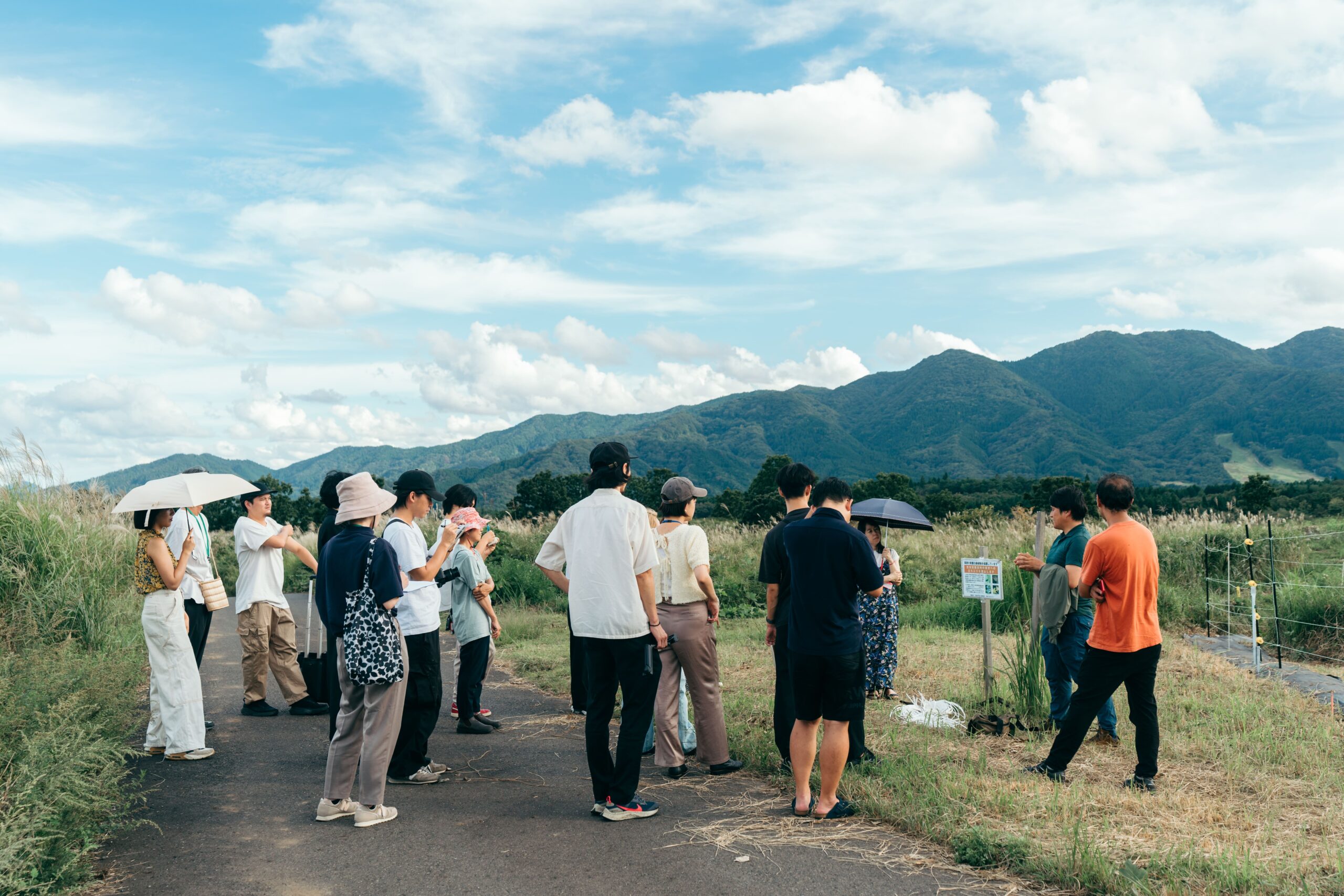 2024年度の蒜山アクションツーリズムにて、草原を見学する様子。現地ツアーを通して、蒜山地域の資源や課題に自身のビジネスを掛け合わせ、最終日にプロジェクトを提案した(写真提供:バ・アンド・コー株式会社)