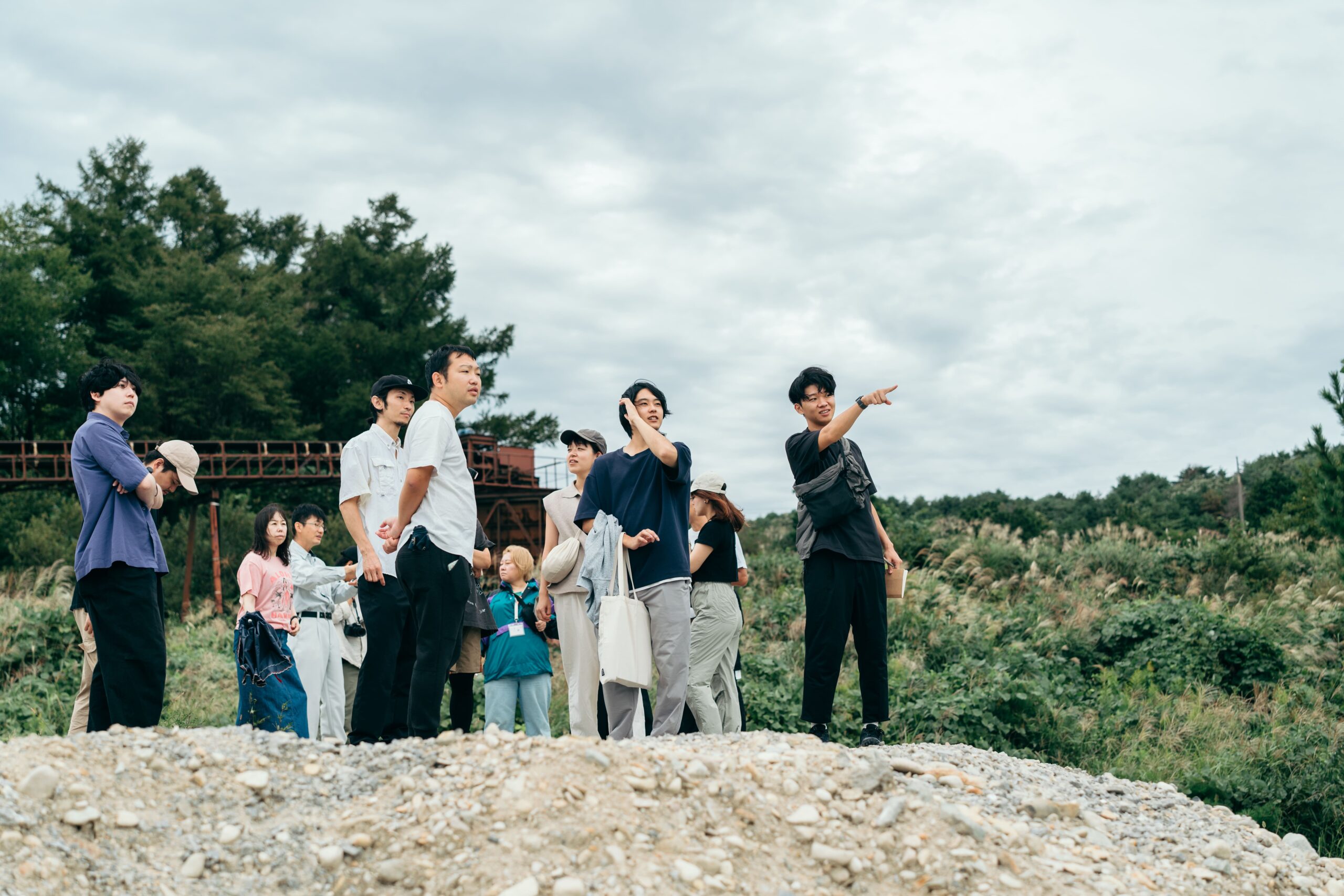 2024年度のスローマテリアル活用コースで珪藻土採掘跡地を訪問したときの様子。蒜山地域特有の自然資源と出会った参加者が、アイデアの種を感じるポイントは人によってさまざま(写真提供:バ・アンド・コー株式会社)