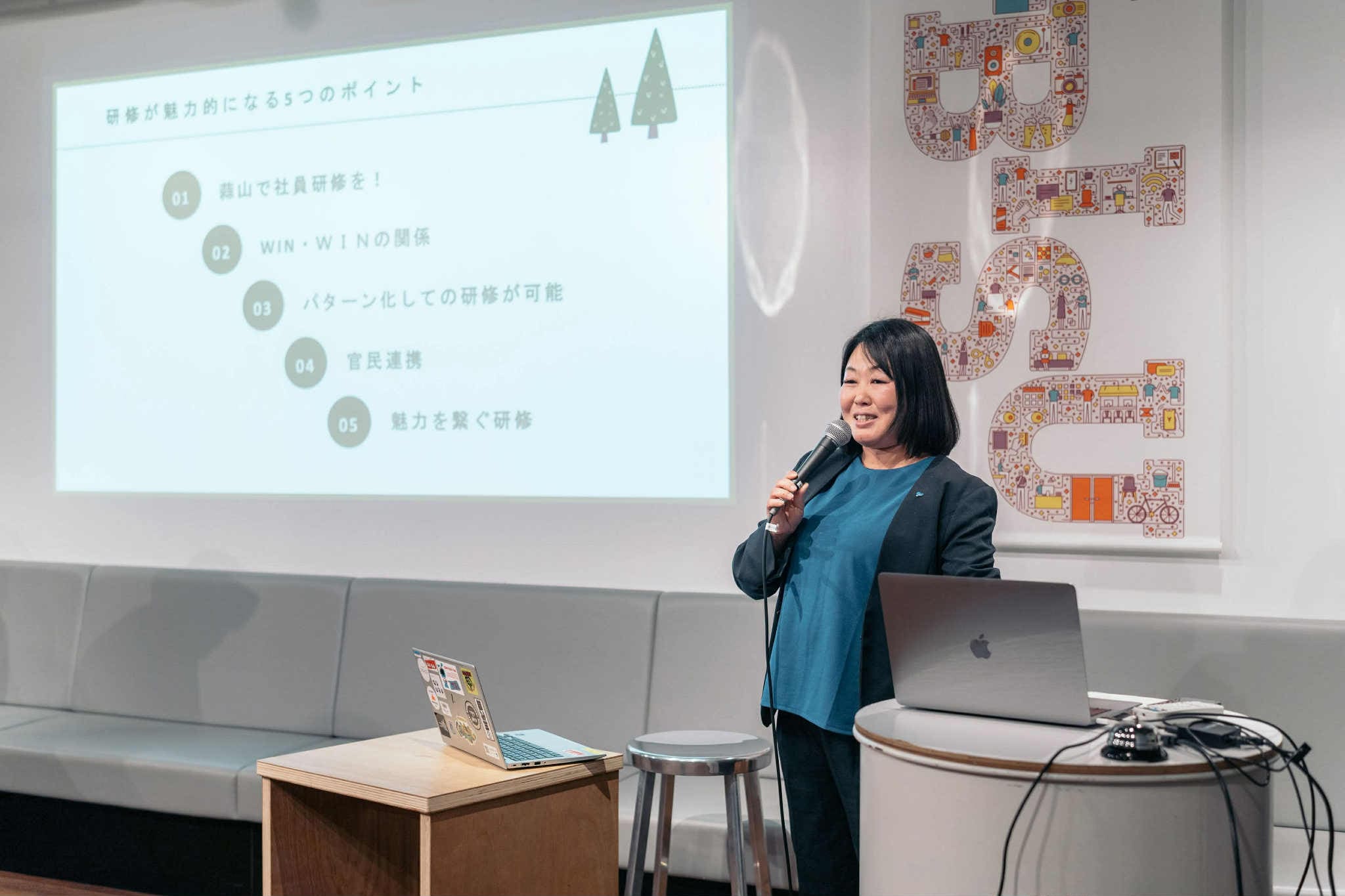 例えば、「蒜山フィールドミュージアム」というプロジェクト。提案した株式会社Mutureは、過去2年間ともアクションツーリズムに参加している、組織開発型DX支援(※)を行う東京の企業です。初年度は一人の社員が個人で参加し、自分たちのDX支援の知見を地域の課題解決にどういかせるかを探った上で、翌年は社内で新たに立ち上がったソーシャルデザイン事業部のリードメンバーが参加しました。そして生まれたこのプロジェクトは、蒜山の「地域そのもの」を博物館に見立て、草原や自然、文化、産業、人びとの暮らしを「展示物」として捉えることで、蒜山の自然資源と人びとをつなぐことを目指しています。