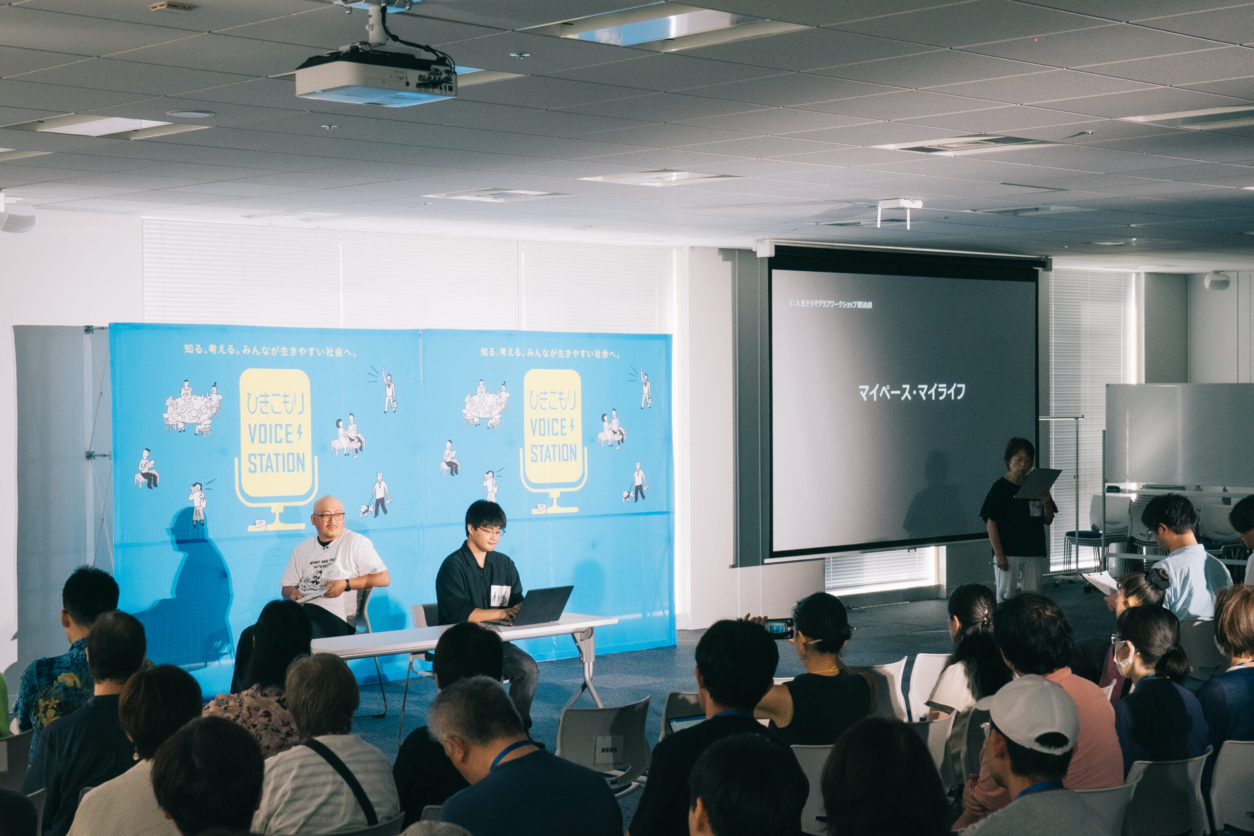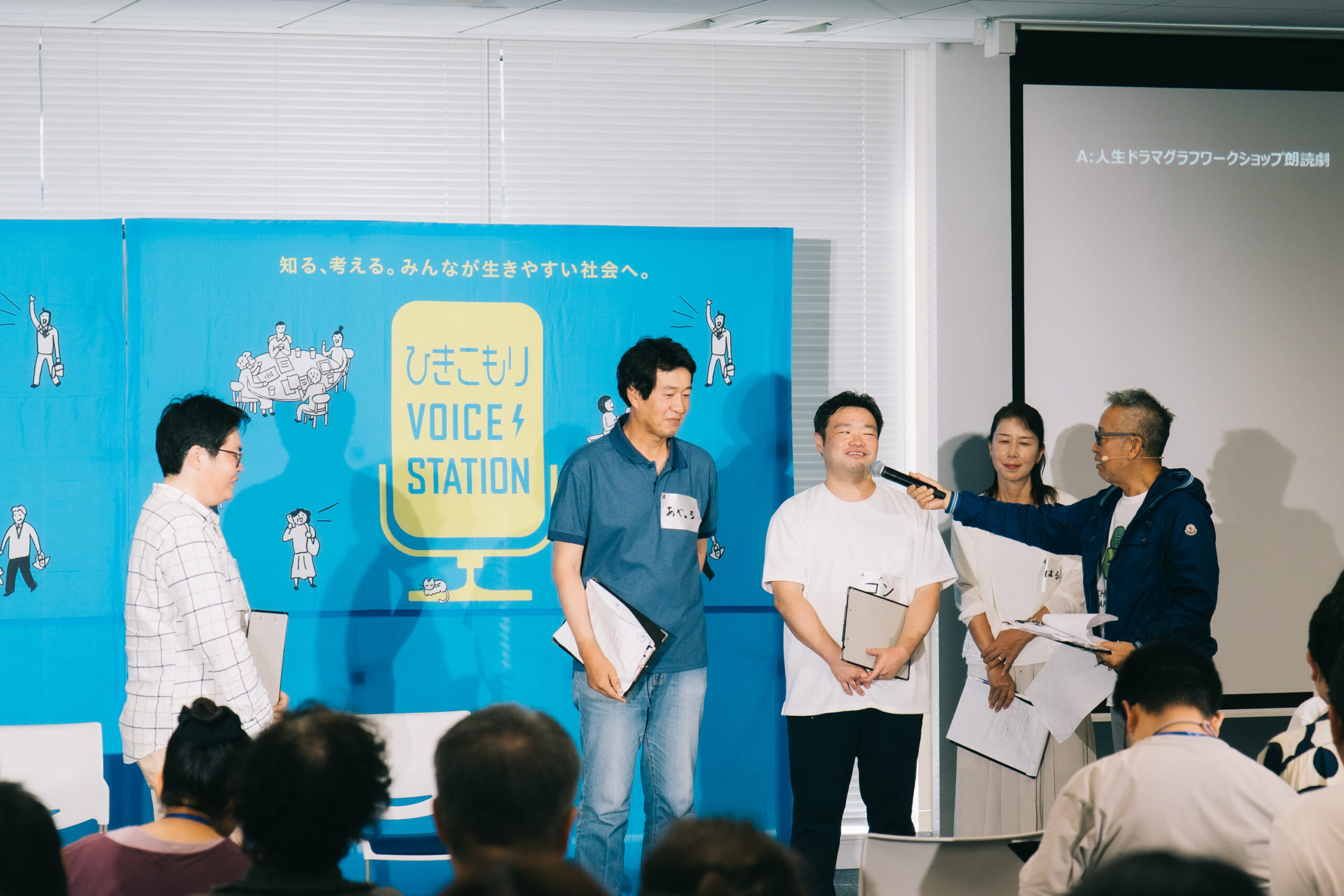 本年度の皮切りとして、2025年8月23日(土)、神奈川県横浜市で「ひきこもりVOICE STATION 全国キャラバン in 神奈川」が開催されました。会場には亞門さんも登場し、亞門さんによる演劇ワークショップと、経験者・支援者のみなさんによる「自立?自律?生きやすい社会はどっち?」をテーマにしたパネルディスカッションを実施しました。