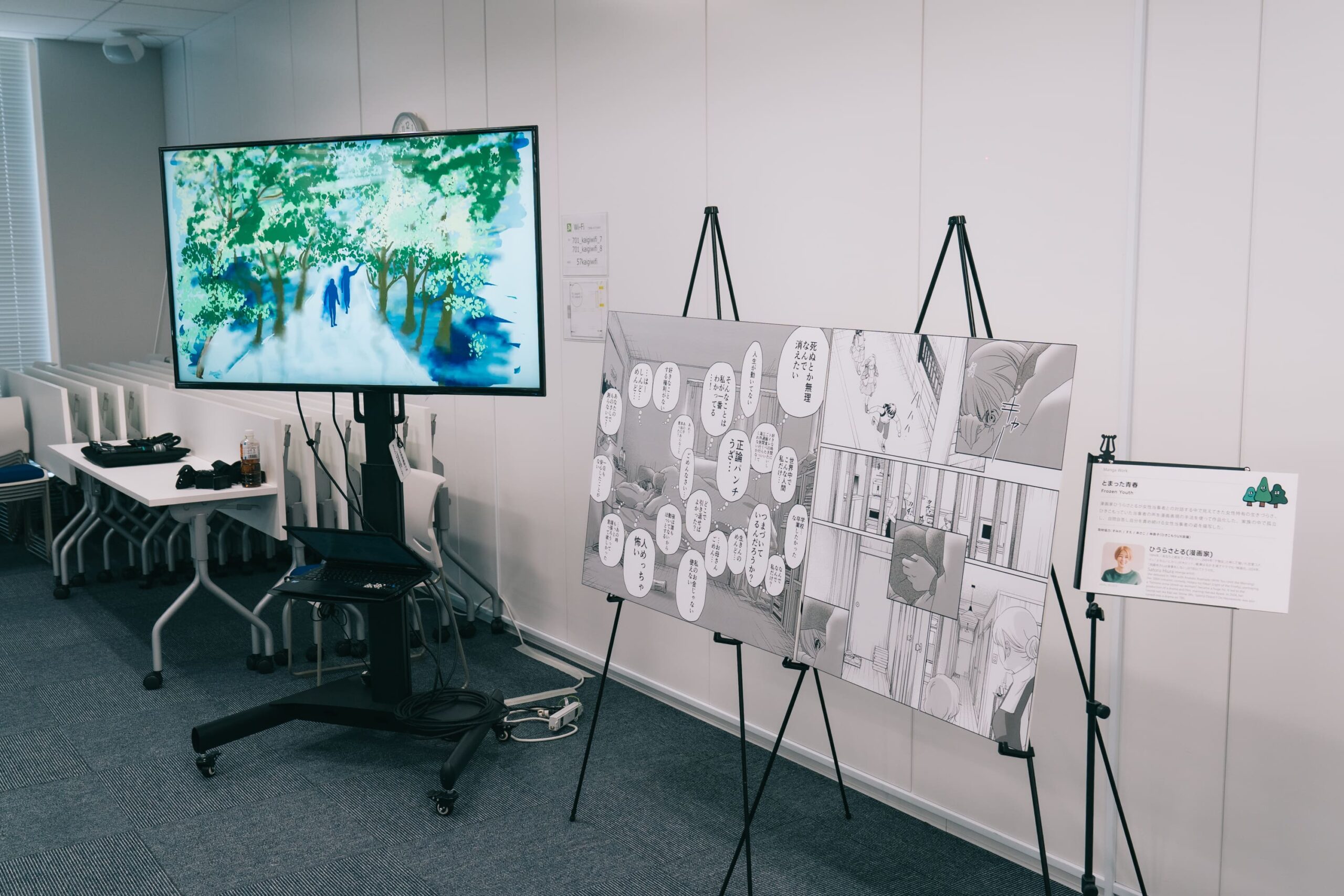 会場の一角には、2025年2月に東京・渋谷で開催された「“HIKIKOMORI” ANYONE? 他人事じゃないかも展」の展示の一部が公開されていた。さまざまなジャンルのクリエイターが、ひきこもり当事者・経験者とともに制作した作品は、現在バーチャル空間で見ることができる