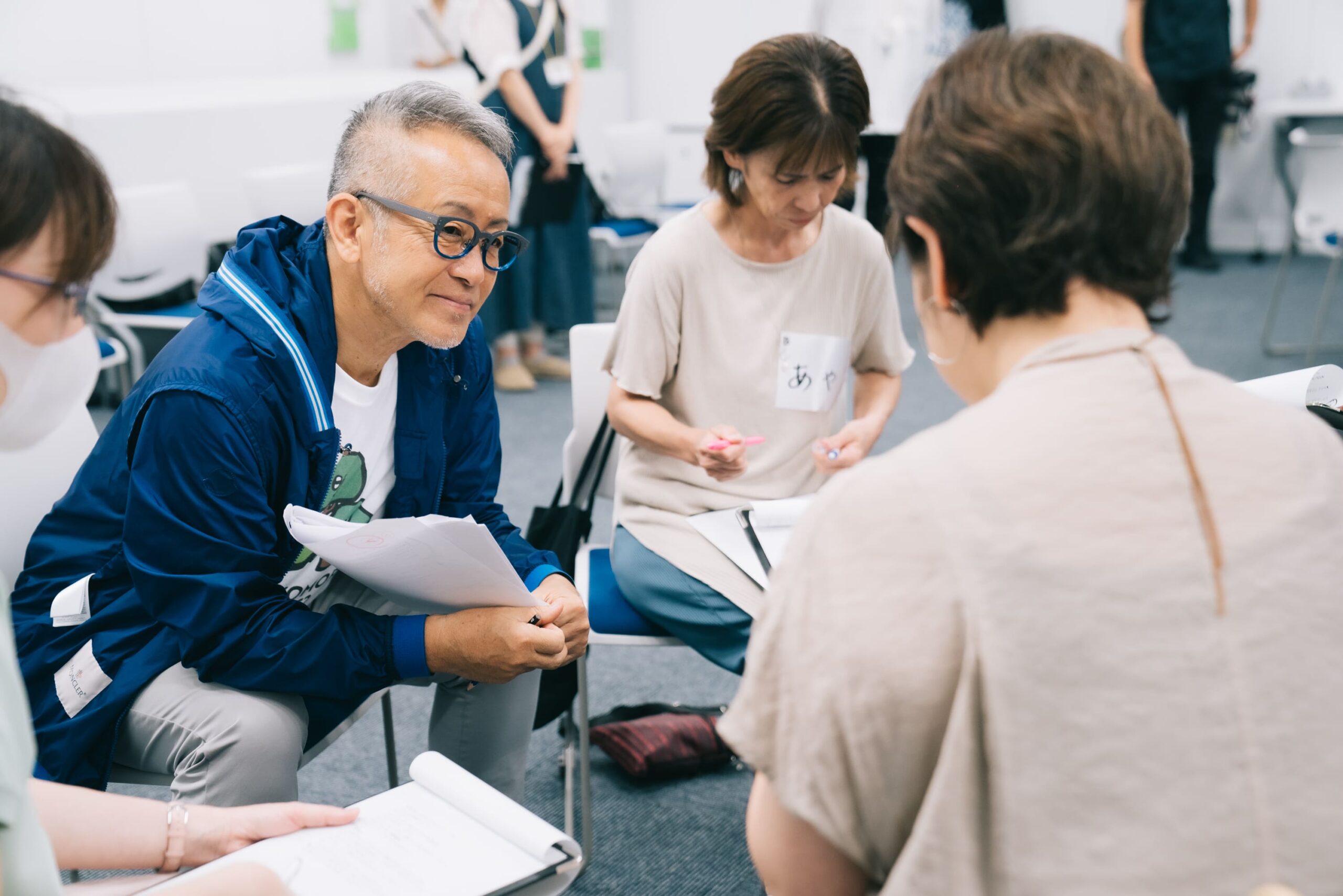 今回グラフが紹介された方の中から、3人の体験が朗読劇になります。ここで、朗読劇ワークショップ参加者は練習のため別室に移動しました。