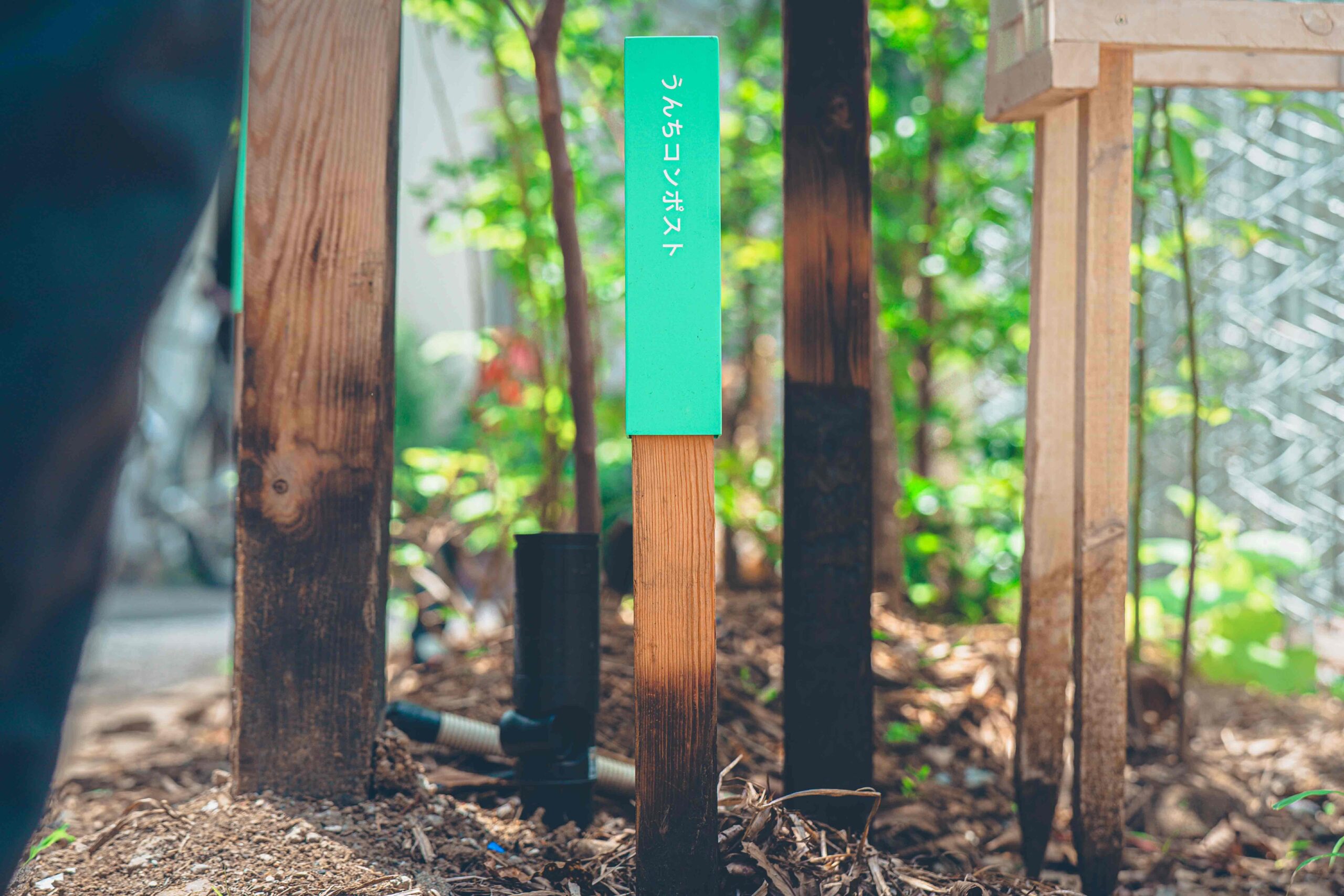 さらに、その横に立っているのは「うんちコンポスト」と書かれた謎のポールサイン。