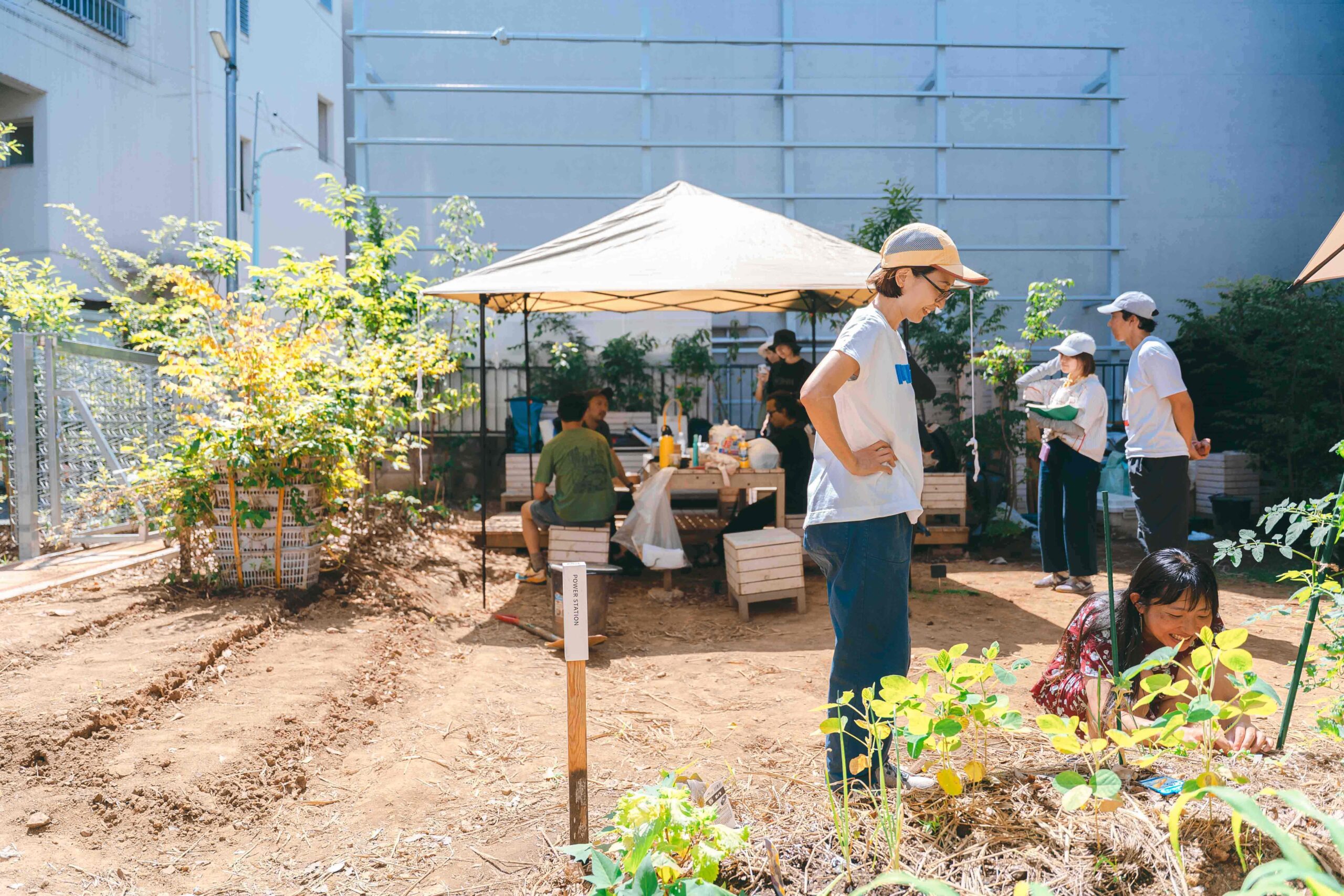 2025年6月現在、「Comoris」は30代から40代を中心とする20人のシェアメンバーと5人の事務局スタッフの計25人で運営されています。もともと何の関わりもなかった人たちが「都心に森をつくる」という同じ旗印の下に集まったそうです。子どもを土に触れさせたかった、企業でサステナビリティに取り組んでいるけど現場で土に触れる機会がなかった…など、参加の理由はさまざま。