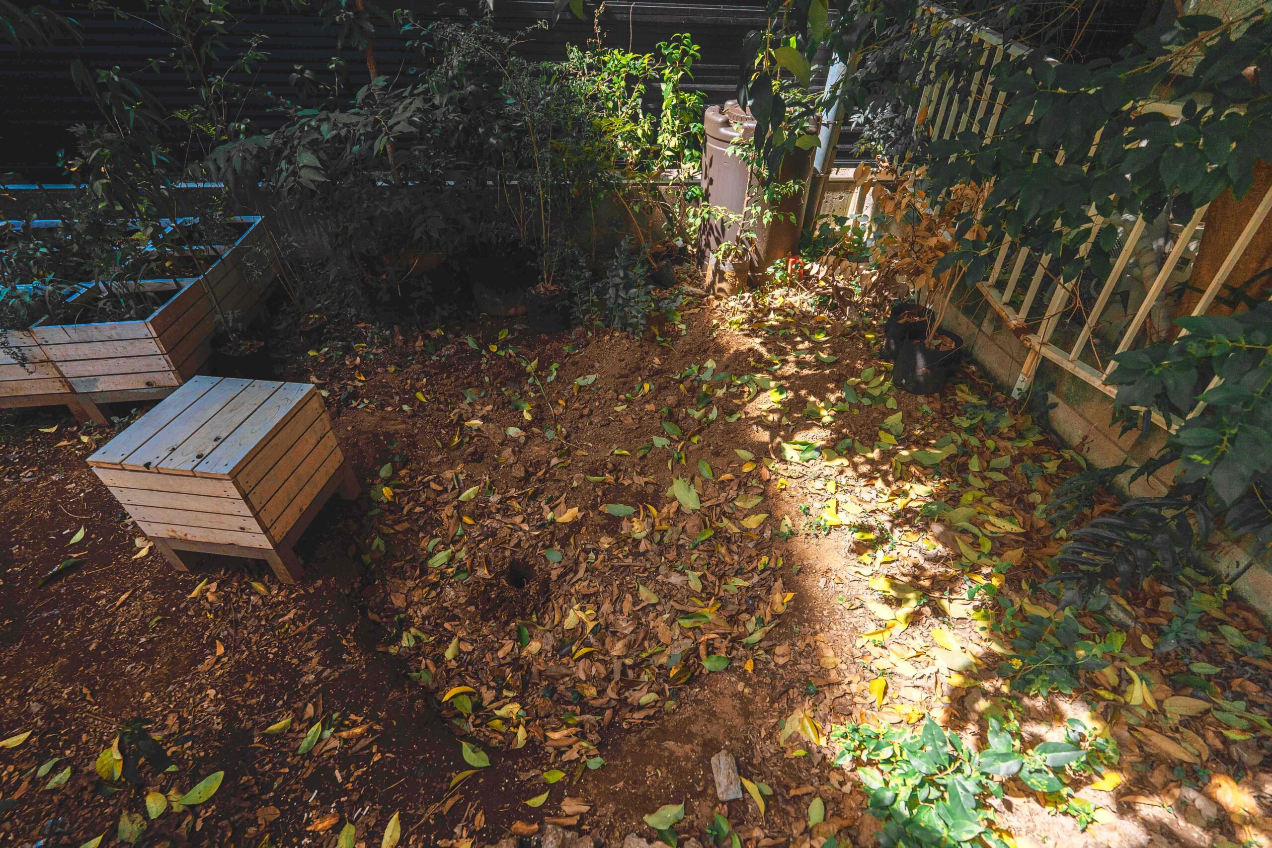 新たな森づくりの場は路地に面し、三方を集合住宅や民家に囲まれた土地。当初は隣の庭先に植わっている大木が一本あるだけの空き地でした。