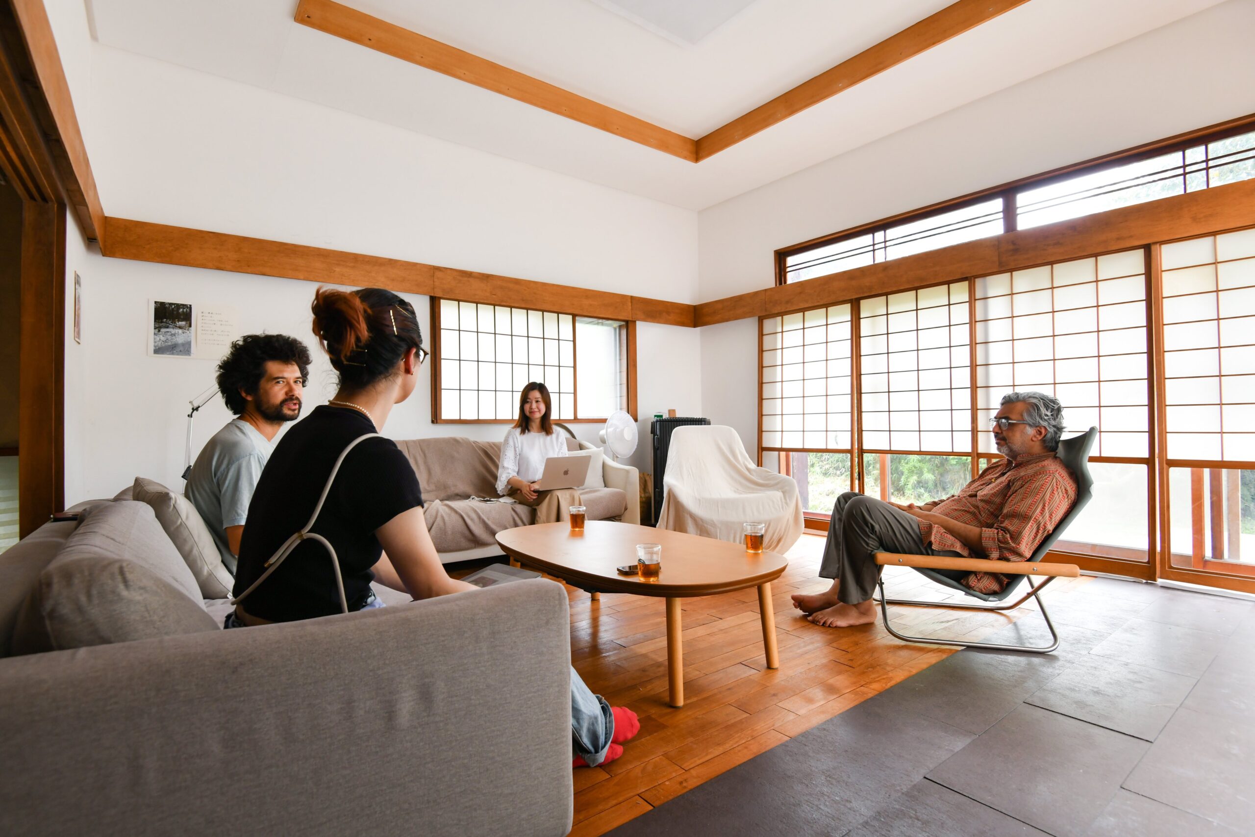 通訳として、自身もパーマカルチャーの学びの場を主催するソーヤー海(そーやー・かい)さん(写真左奥)にもご同席いただきながら、マニッシュさんとお話した