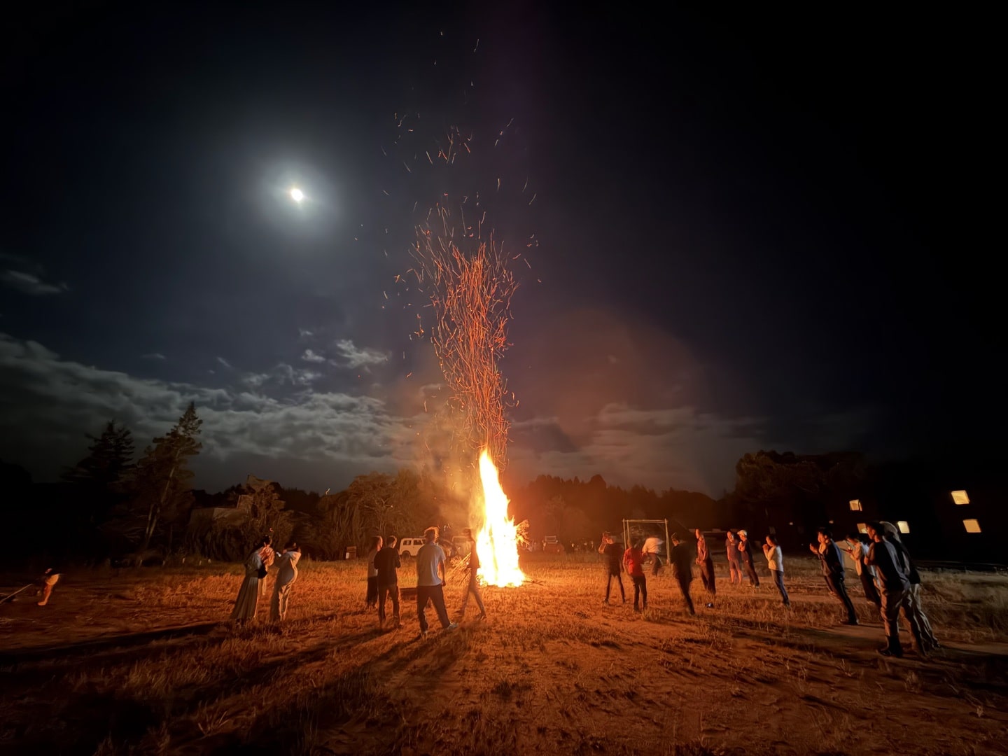 キャンプファイヤーでは、月ヶ瀬小唄を地域の人から教えてもらい、みんなで輪になって踊った。この日は満月で月が美しく、印象的な夜となった