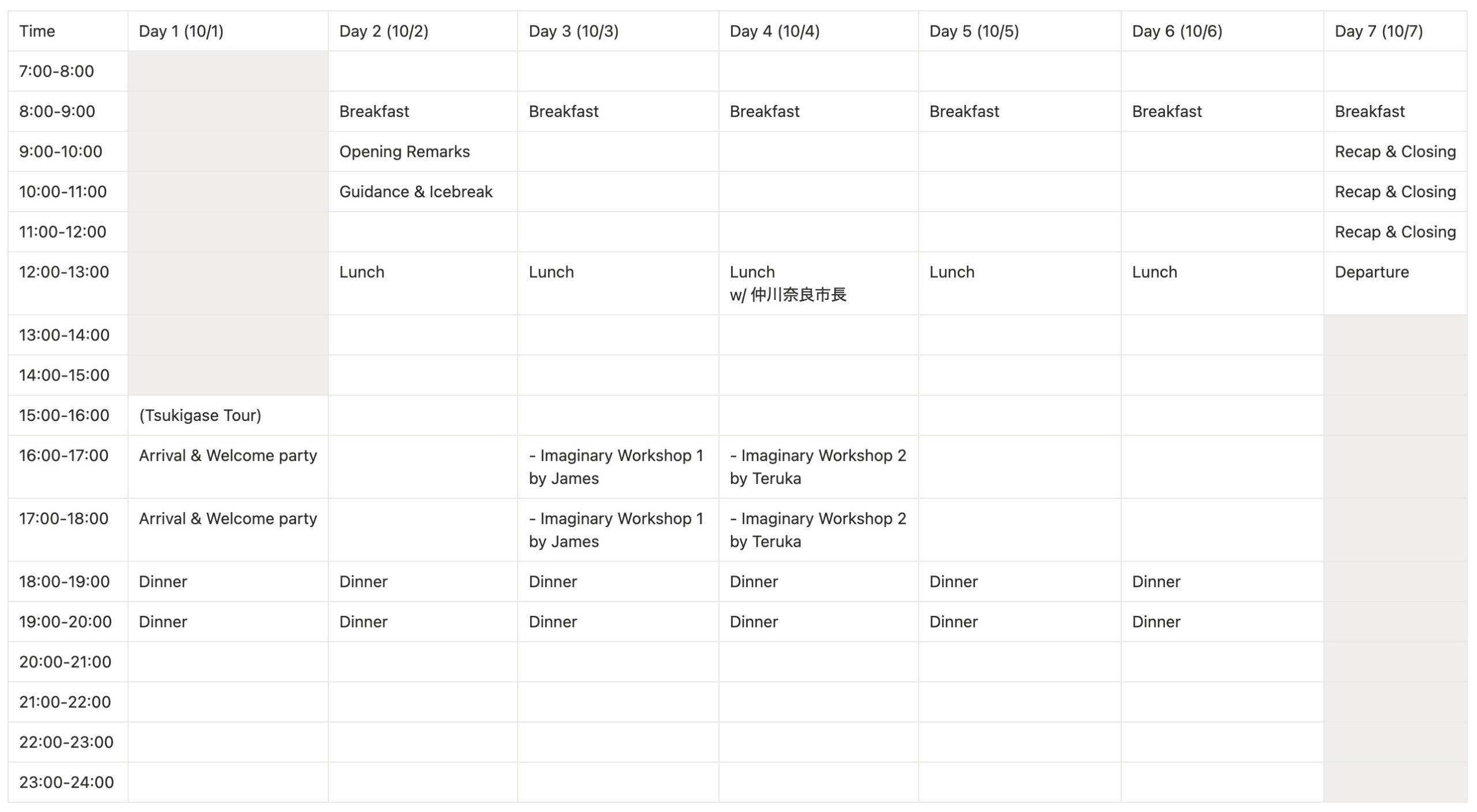 また、4日目には、奈良市長の仲川げんさんが会場に訪れ、昼食を共にしつつ、自治をテーマとする議論も。地方自治と民主主義の新しい形態についてや、デジタル技術を活用した直接民主主義の可能性、地方交付税と自治体の財政自立に関する課題、ローカルコミュニティの自律と意思決定プロセスなど、さまざまな意見交換がなされました。