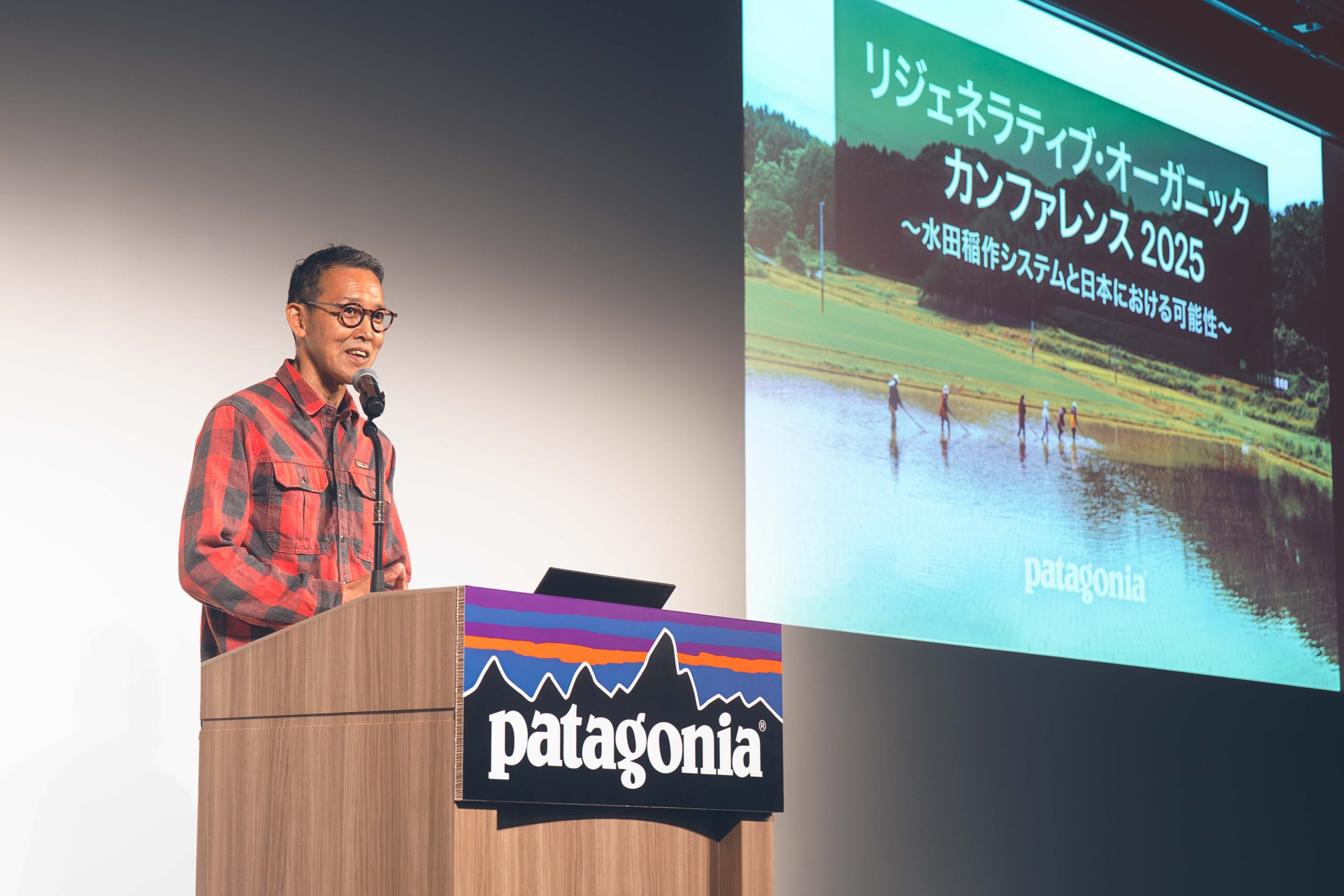 パタゴニアはミッションとして「故郷である地球を救うためにビジネスを営む。」と掲げている企業です。いわば地球のためにビジネスをする同社がRO農法に取り組む意義は何なのか。パタゴニア日本支社 インパクト部のディレクターを務める近藤勝宏(こんどう・かつひろ)さんはカンファレンスに先立ち、農業従事者への敬意と合わせて「農業のあり方は、地球に影響している」と語りました。