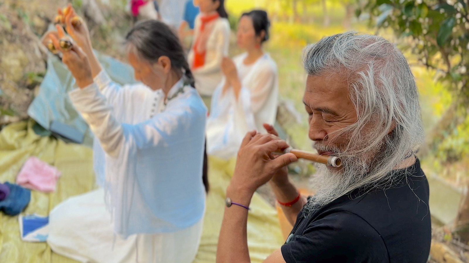 2024年3月、地球コクリ!の仲間と共に、千葉・いすみ市にて行った「祈りの旅」。音楽家の奈良裕之さんとともに、その場にいる人たち全員で、感覚をひらき、共に祈り、「人・神・自然」とコ・クリエーションしていく(画像提供:地球コクリ!)
