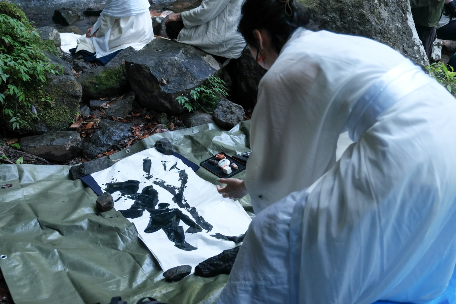 非言語でつながっていく感覚が研ぎ澄まされていく中で、その必要性をはっきりと確信したのは、3日目のこと。37年間書道をしてきた愛さんが、全員の前で書道によるコ・クリエーションの儀式を行ったのです。
