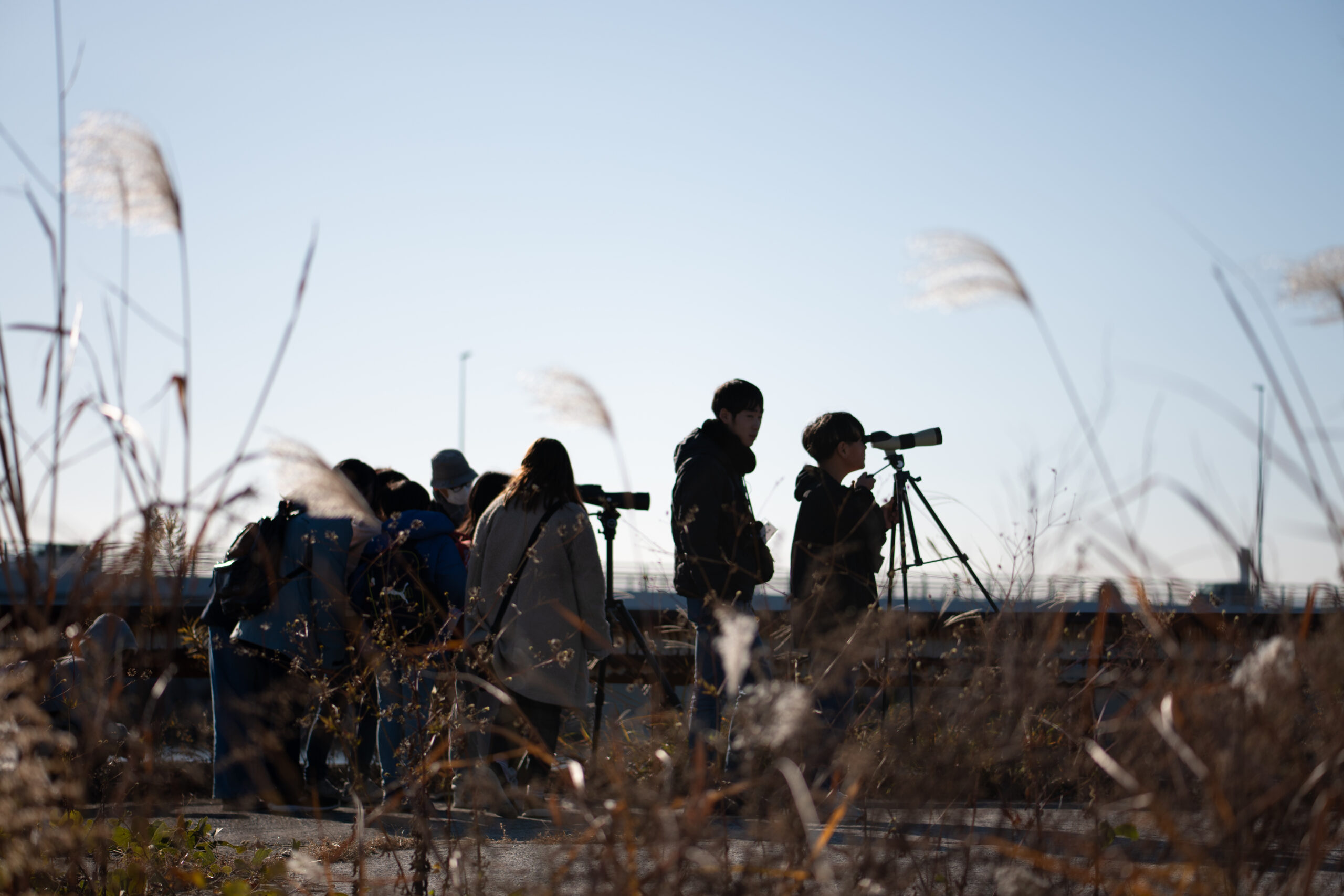お二人のもとを伺ったのは、子ども地球教室の初日。夏の教室に参加した子どもたちが再び集う「冬の地球教室」に同行させてもらいました。今回の活動場所は、大分県北東部の国東半島。12月初旬、空気は少し冷たいけれど陽が差すとあたたかい。そんな初日の活動は、野鳥観察からはじまりました。はじめに、子どもたちの様子をご紹介しましょう。