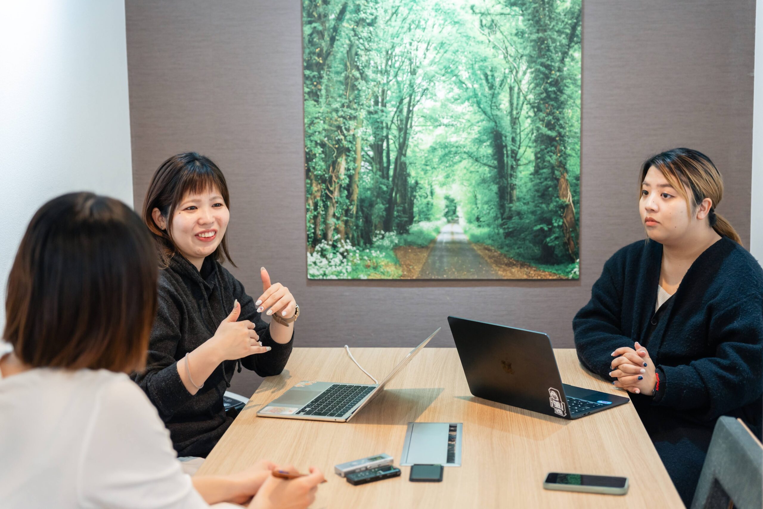 BowLでの勤務歴は、大田さん(写真左奥)が愛佳さん(写真右)の1年先輩。愛佳さんもリワークプランナーとして一人前になった今、二人は互いに支え合いながら刺激を受け合う“バディ”のような関係性になっている