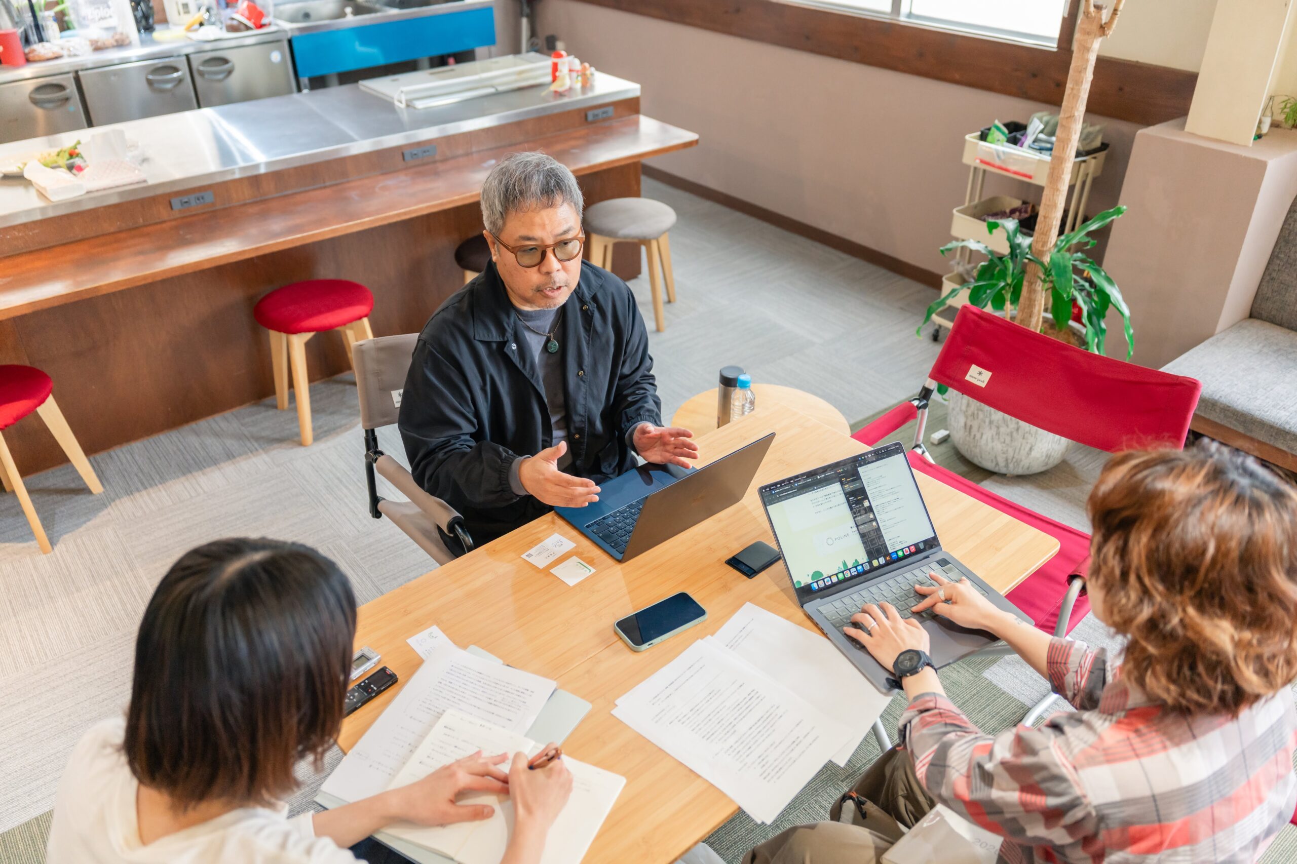 記事後半に登場するBowL代表・荷川取佳樹(にかどり・よしき)さんへの取材の様子。プライバシー保護のため実際のリワーク支援の様子は掲載できないが、少人数でのダイアログはまさに同じ場所で取材の様子に近い状態で行われていた