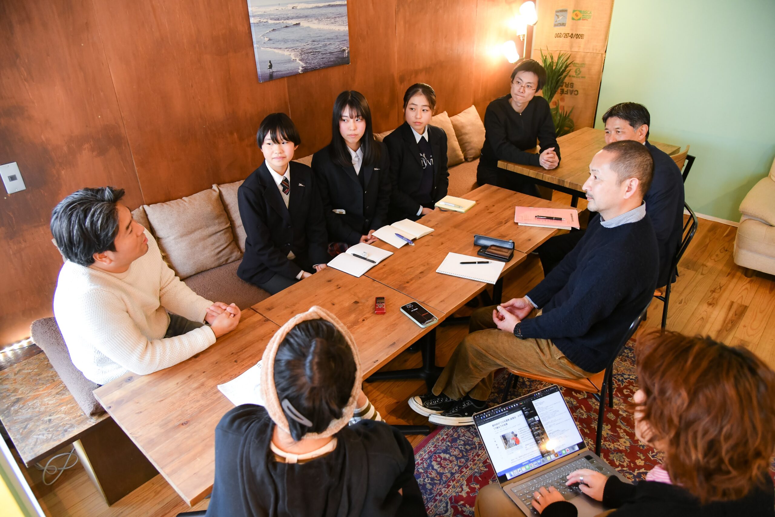 座談会会場は、茅ヶ崎にある「まちのクリエイティブポケット totsukuru」。オーナーの市川夫妻が、実は最初に池田夫妻と子どもの主体性をどう育んでいくかというテーマでブレストした方々。こども選挙のロゴやチラシを制作したデザイナーでもある