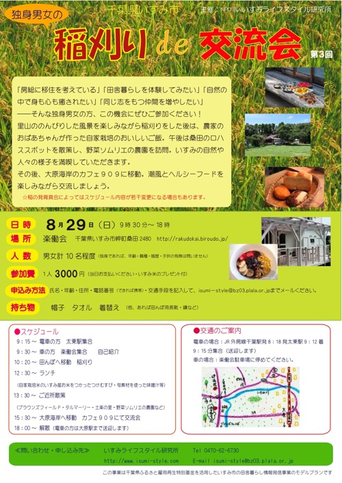 参加費:1 人 3000 円 (当日お支払いください ・ いすみ米のプレゼント付)