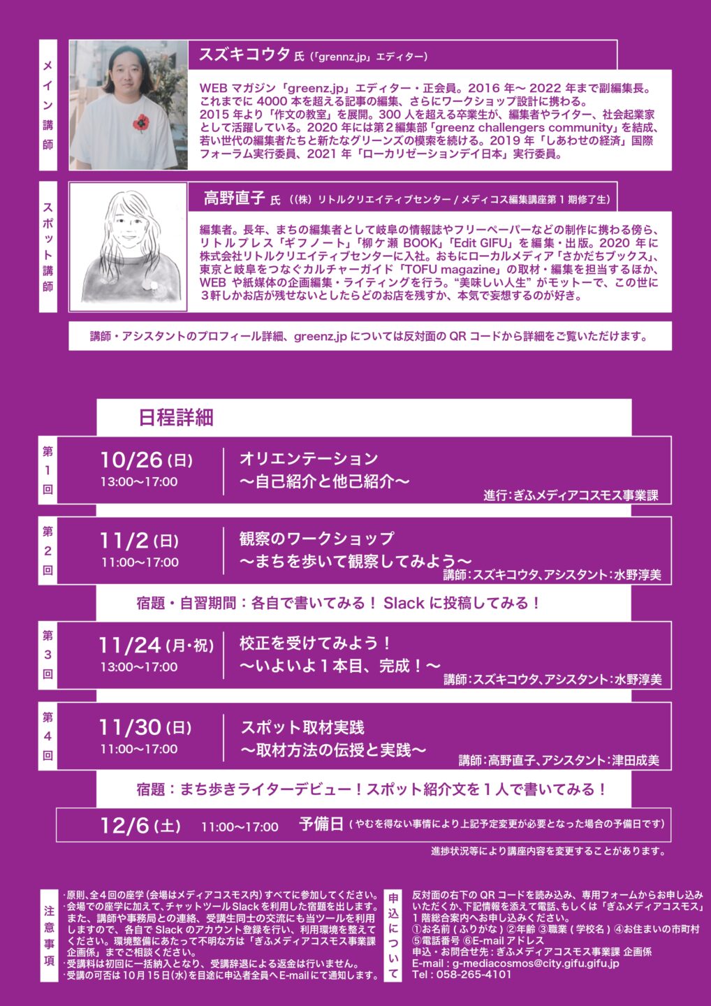 ・原則、全4回の座学(会場はメディアコスモス内)すべてに参加してください。(12/6は延期等の予備日)