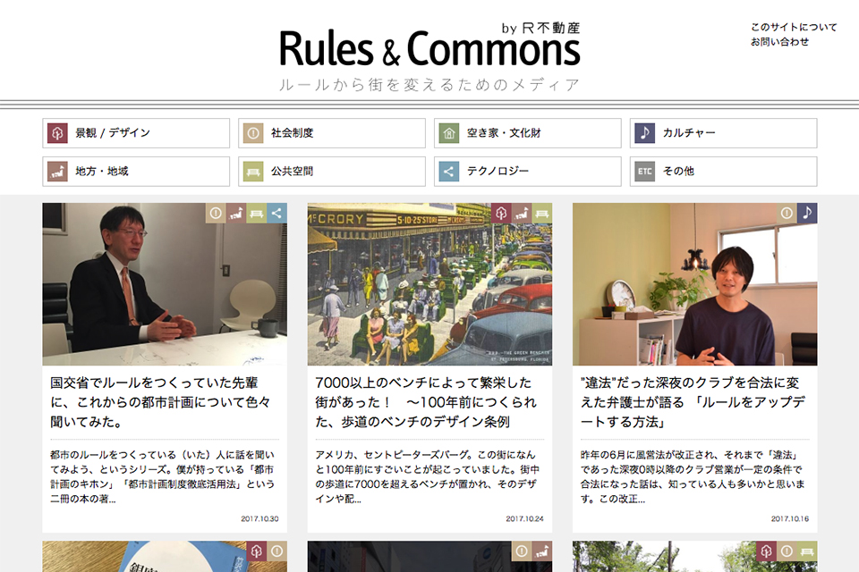 10月にオープンした新しいメディア『Rules & Commons』。街や暮らしを取り巻く「ルール」を考え直すことで、これからの都市や街を面白く素敵にしよう、というテーマで始めたサイトです。