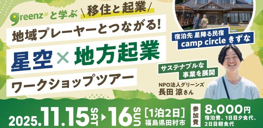 東京から片道2時間。福島県田村市で、サステナブルな暮らしと起業のリアルに触れる1泊2日の現地ツアーを開催します。