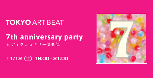 東京アートビート7周年記念パーティーを11月12日18時より、渋谷のDictionaryにて開催します。是非お友達お知り合いと一緒に遊びにお越し下さい。
