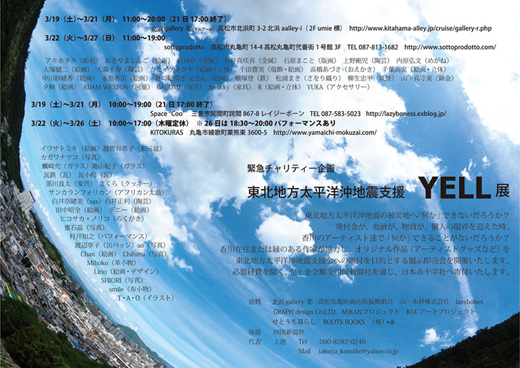 【イベント】【緊急チャリティー企画】「 YELL 展 」 東北地方太平洋沖地震支援企画展示販売 後援 四国新聞社